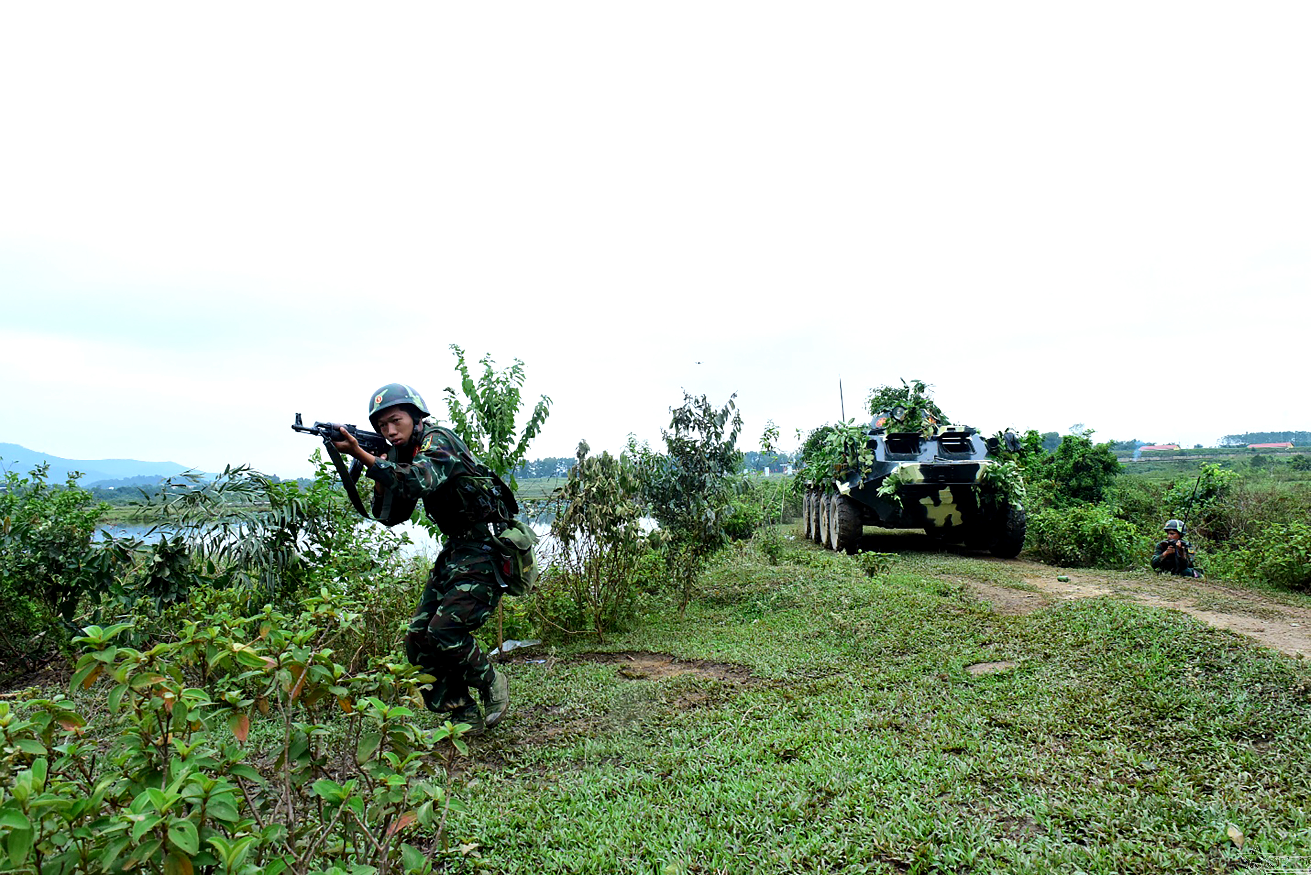 Đội hình xe Thiết giáp hiệp đồng chặt chẽ với bộ binh, tạo thế tiến công vững chắc trên hướng chủ yếu tiến công “địch” đổ bộ đường không.