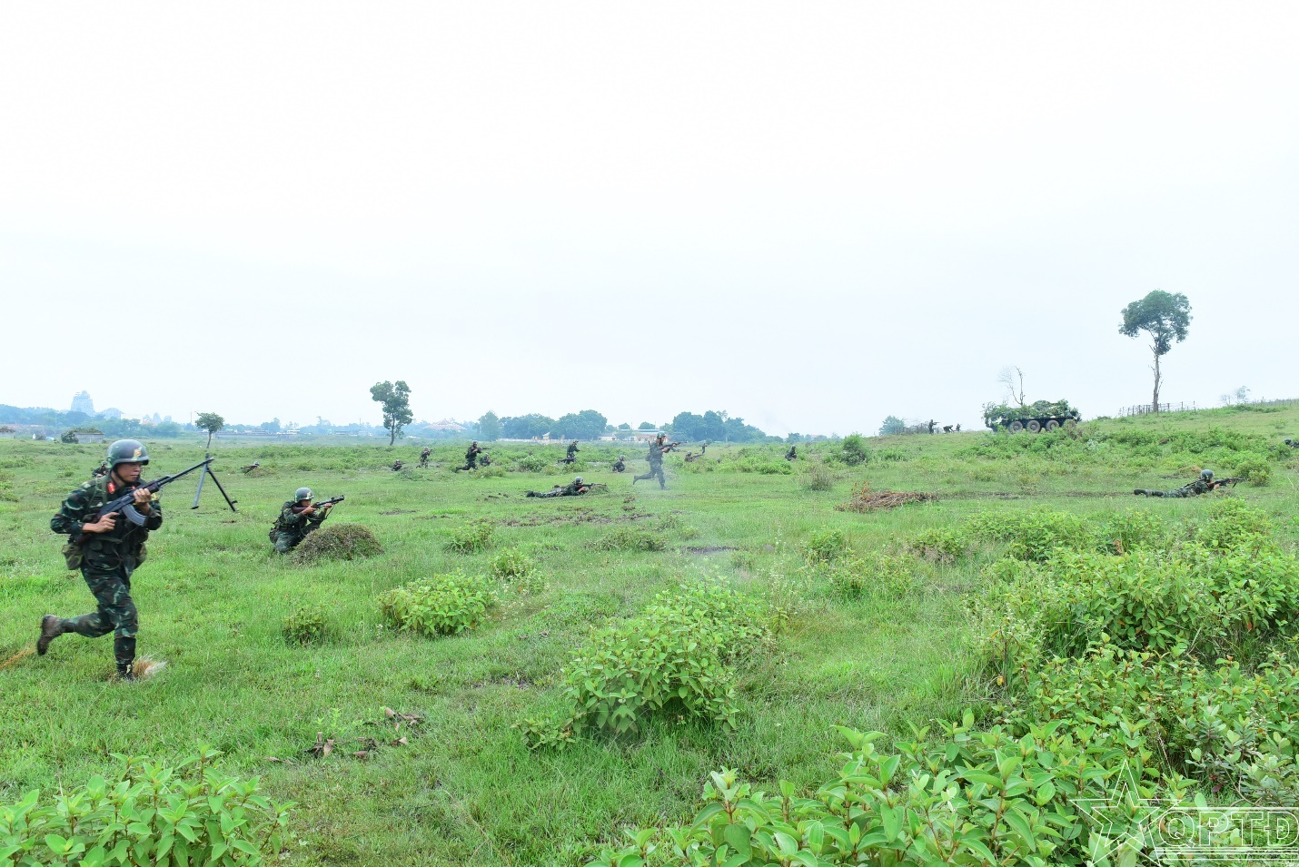 Bộ binh và xe Thiết giáp đồng loạt xung phong, tiến công tiêu diệt địch.