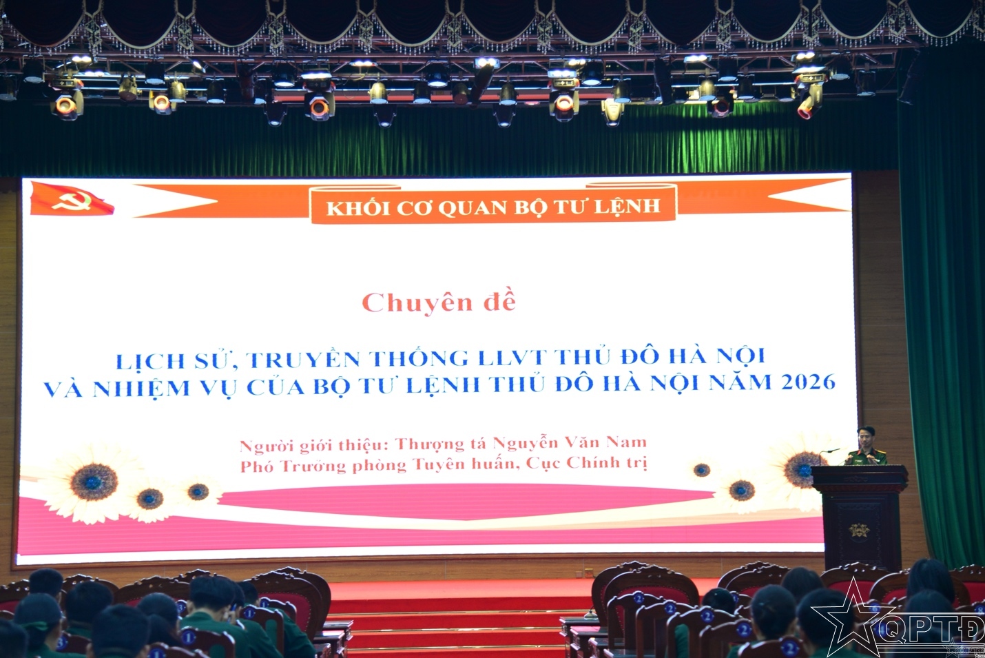 QPTĐ-Chiều 18-3, Bộ Tư lệnh Thủ đô Hà Nội đã tổ chức Hội nghị học tập chính trị, phổ biến giáo dục pháp luật tháng 3 năm 2026 cho sĩ quan, QNCN đến cấp bậc Trung tá, công nhân và viên chức quốc phòng khối cơ quan Bộ Tư lệnh Thủ đô Hà Nội.