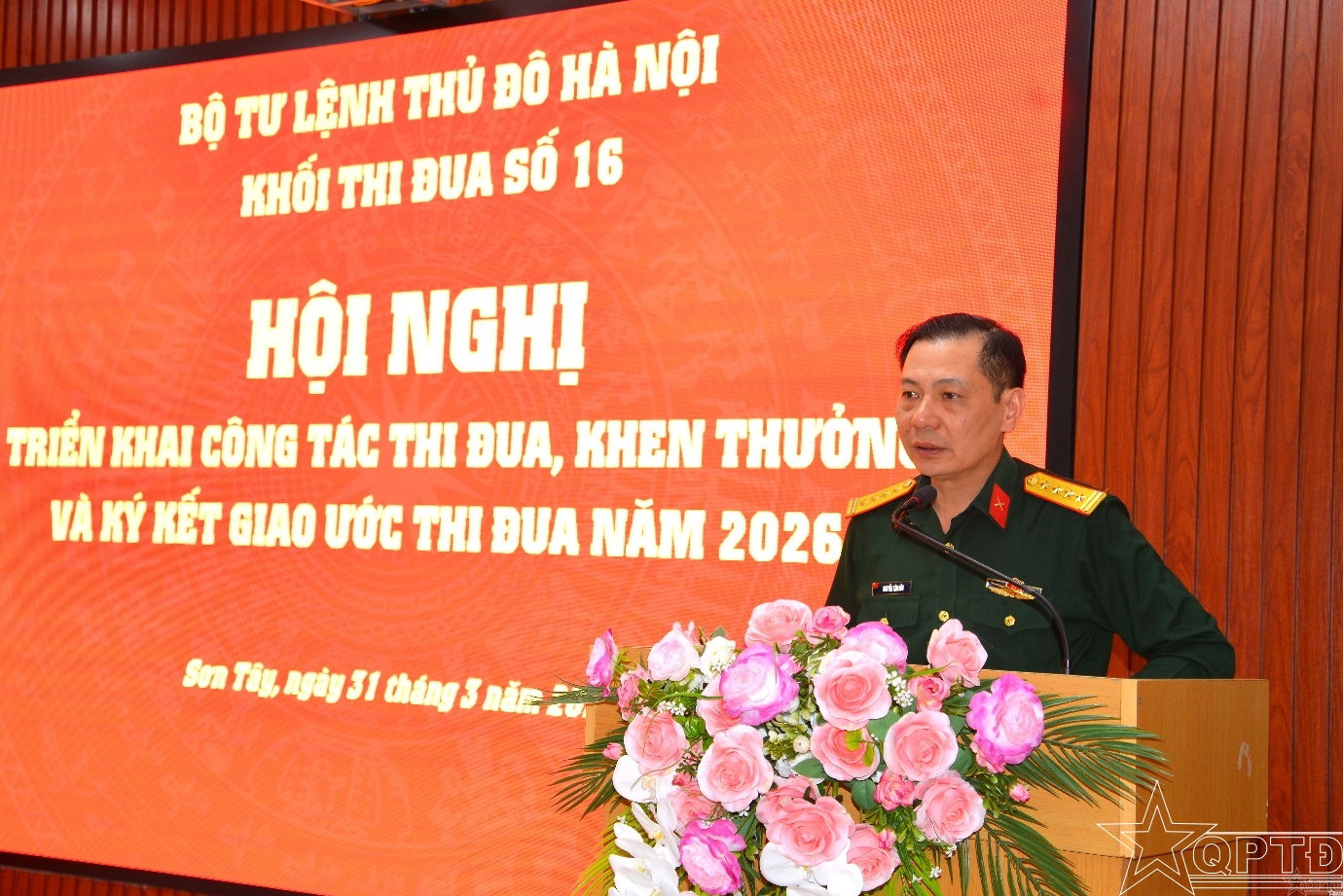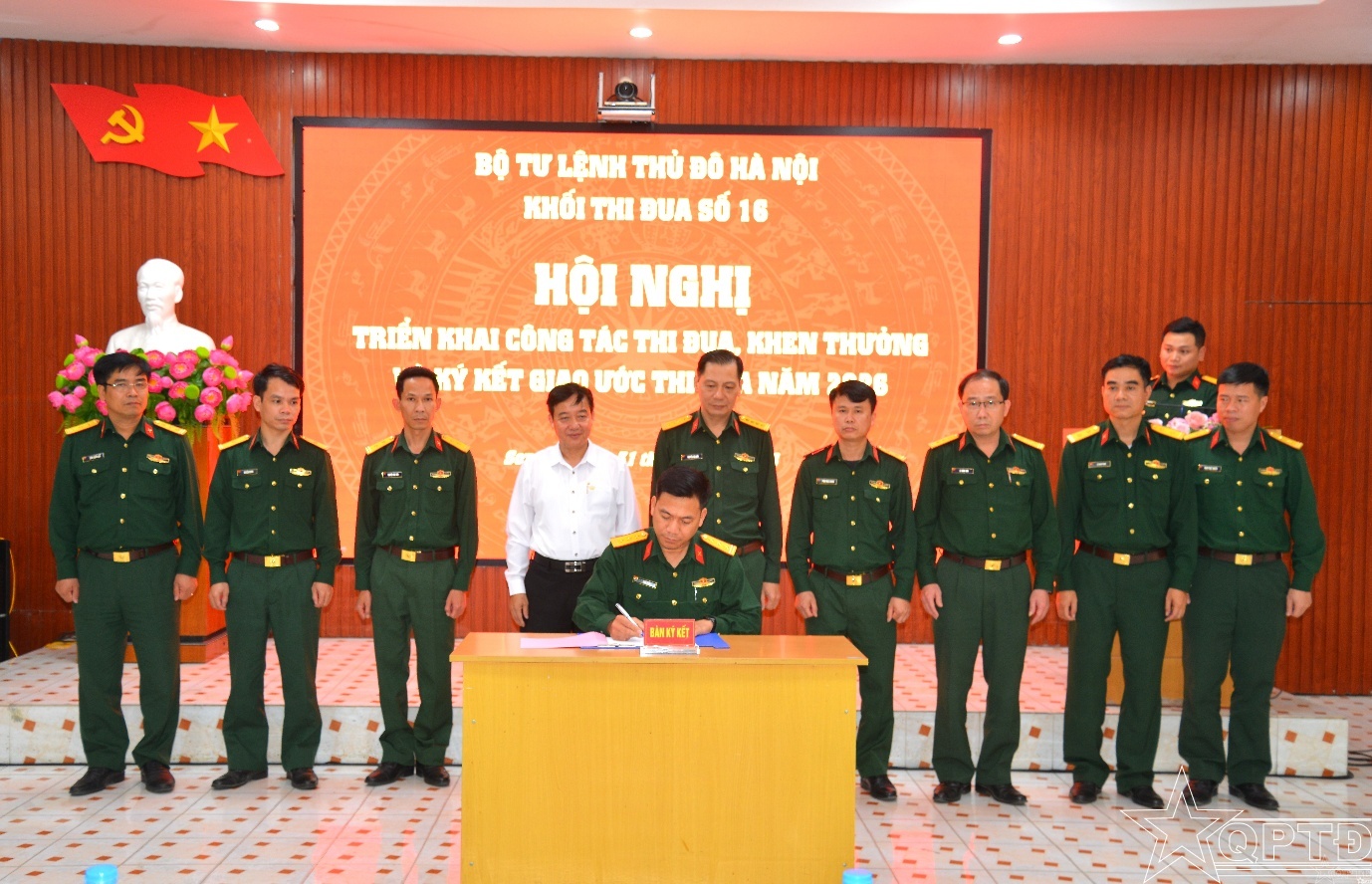 Tại Hội nghị, đại diện các đơn vị trong Khối thi đua số 16 đã ký kết giao ước thi đua năm 2026 với chủ đề: “Đoàn kết, kỷ cương, đột phá, sáng tạo, quyết thắng”. Khối xác định thi đua thực hiện tốt các nội dung, trong đó tập trung xây dựng cơ quan, đơn vị vững mạnh toàn diện “mẫu mực, tiêu biểu”; nâng cao chất lượng tham mưu thực hiện nhiệm vụ quân sự, quốc phòng địa phương; duy trì nghiêm chế độ sẵn sàng chiến đấu; chủ động nắm, dự báo tình hình, không để bị động, bất ngờ. Đẩy mạnh thi đua thực hiện “Ba đột phá” theo Nghị quyết Đại hội Đảng bộ Bộ Tư lệnh lần thứ IV, nhiệm kỳ 2025 – 2030; chú trọng đổi mới, nâng cao chất lượng huấn luyện, giáo dục chính trị, xây dựng chính quy, quản lý kỷ luật, đẩy mạnh cải cách hành chính và chuyển đổi số trong lực lượng vũ trang Thủ đô.