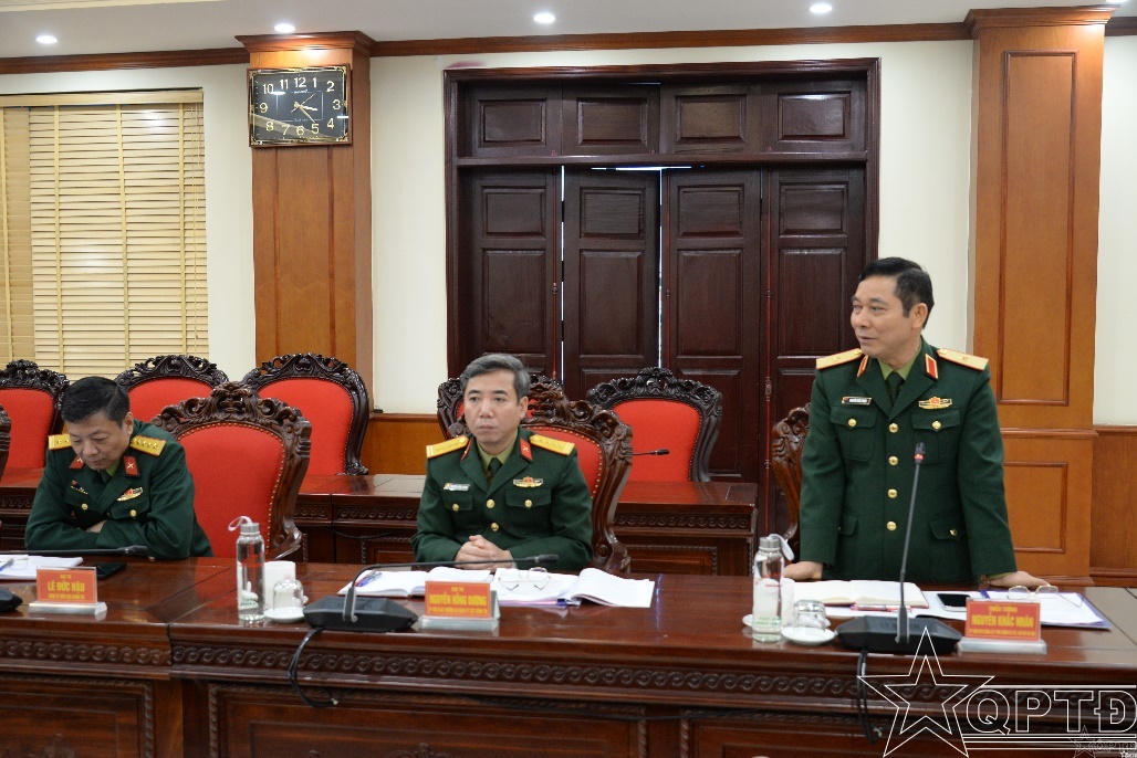 Thiếu tướng Nguyễn Khắc Nhân, Phó Chính ủy Bộ Tư lệnh Thủ đô Hà Nội phát biểu tại hội nghị.