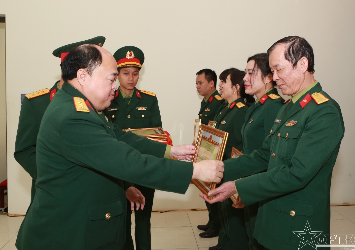 Thiếu tướng Nguyễn Đình Lưu, Phó Tư lệnh Bộ Tư lệnh Thủ đô Hà Nội trao thưởng cho các tập thể, cá nhân.