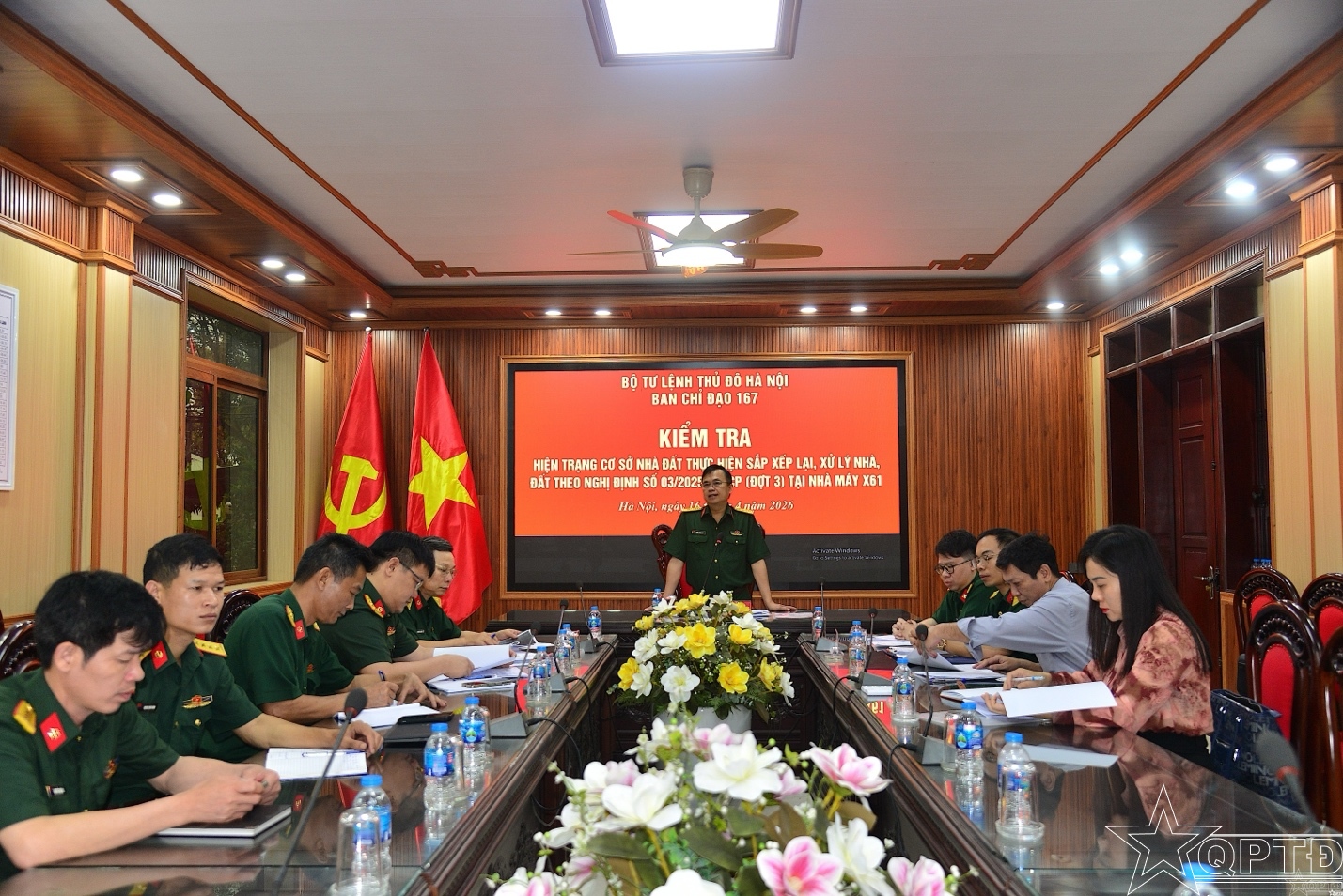 QPTĐ-Sáng 17-4, Đoàn Công tác của Bộ Tư lệnh Thủ đô Hà Nội kiểm tra công tác quản lý, sử dụng đất quốc phòng của Nhà máy X61 và Kho Khí tài hóa học 61 thuộc Binh chủng Hoá học. Đoàn Công tác do phòng Doanh trại Bộ Tư lệnh chủ trì, Đoàn còn có sự tham gia của cán bộ Sở Tài chính và cán bộ Xã Đoài Phương.