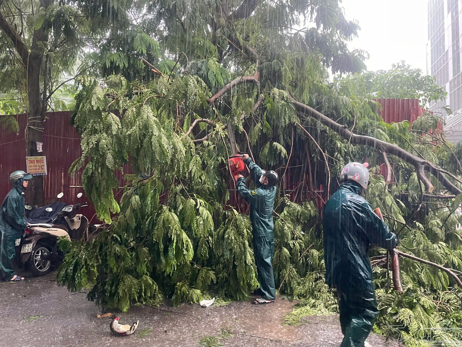 Dân quân phường Hà Đông tích cực giúp dân khắc phục ảnh hưởng cơn bão số 10