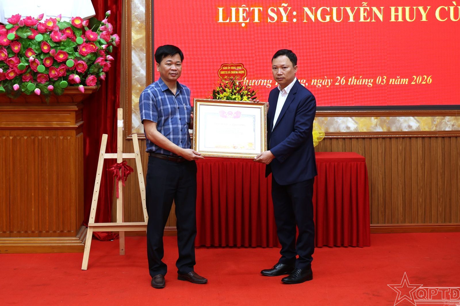Xã Chương Dương, thành phố Hà Nội trao Bằng Tổ quốc ghi công cho thân nhân liệt sĩ Nguyễn Huy Cừ.