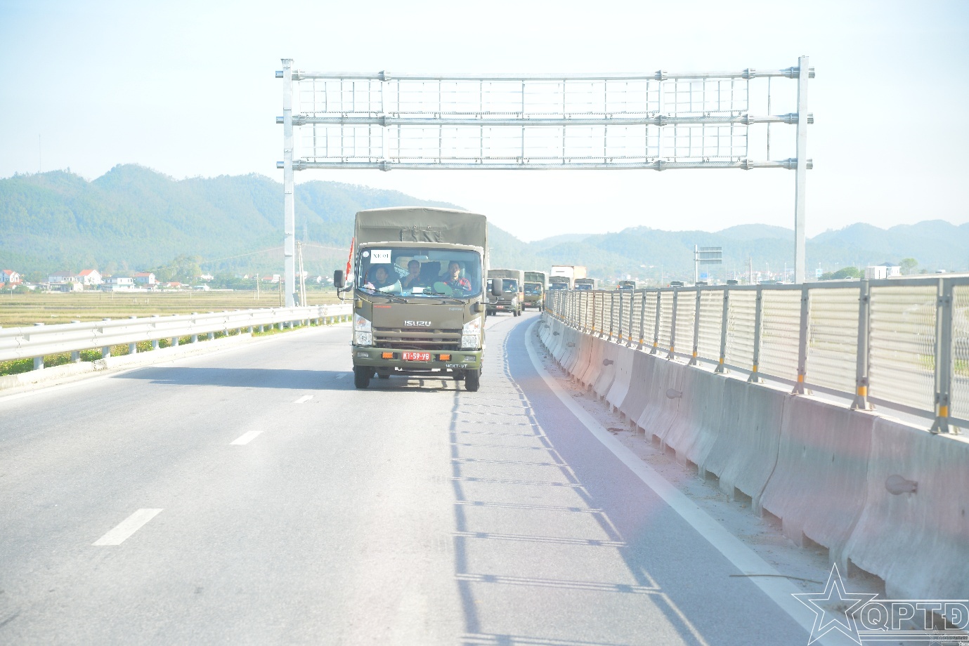 Đoàn xe vận chuyển Bộ Tư lệnh luôn bảo đảm đội hình thống nhất và di chuyển đúng Luật Giao thông đường bộ.