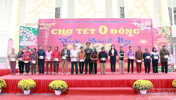 Trong sắc Xuân rạng rỡ, khuôn viên tổ chức “Chợ Tết 0 đồng” xã Cổ Đô được bài trí gọn gàng, trang trọng. Bảy gian hàng với 12 mặt hàng nhu yếu phẩm thiết yếu ngày Tết được chuẩn bị chu đáo, từ gạo, mì, dầu ăn, bánh kẹo đến các mặt hàng phục vụ sinh hoạt thường ngày. Ban Tổ chức chương trình xã Cổ Đô đã phát 800 phiếu mua hàng cho nhân dân địa phương. Nhân dân nằm trong diện được hưởng đến “chợ” không phải lo toan chuyện mua bán, mà nhẹ nhàng lựa chọn những món đồ cần thiết cho gia đình.