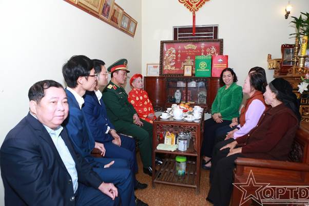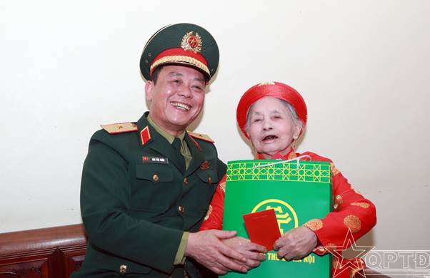 Thiếu tướng Đào Văn Nhận, Ủy viên Ban Thường vụ Thành ủy, Tư lệnh Bộ Tư lệnh Thủ đô Hà Nội đã đến thăm, tặng quà và chúc Tết Bà Mẹ Việt Nam Anh hùng Nguyễn Thị My, thôn Vạn Thắng.