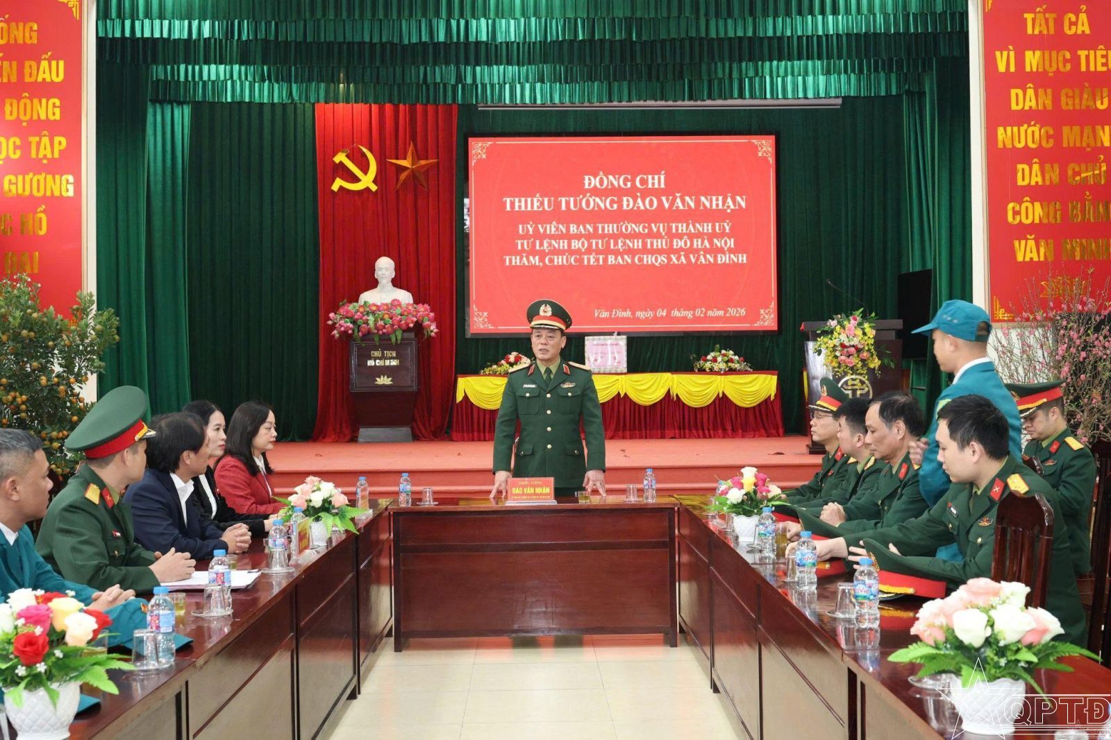 Trong khuôn khổ chương trình làm việc, Đoàn công tác đã đến thăm, chúc Tết Đảng ủy, UBND và Ban CHQS xã Vân Đình. Tại đây, Thiếu tướng Đào Văn nhận đã lắng nghe báo cáo khái quát về tình hình phát triển kinh tế-xã hội, công tác quốc phòng-an ninh và công tác xây dựng Đảng, chính quyền tại địa phương. Trong không khí ấm cúng, thân tình, đồng chí Tư lệnh cũng trao đổi, chia sẻ về những định hướng phát triển trong thời gian tới; đề nghị địa phương tiếp tục phát huy tinh thần đoàn kết, sáng tạo; tập trung phát triển kinh tế nông nghiệp công nghệ cao gắn với du lịch sinh thái; chú trọng xây dựng nông thôn mới bền vững, bảo vệ môi trường; đồng thời không ngừng củng cố, tăng cường khối đại đoàn kết toàn dân, xây dựng hệ thống chính trị trong sạch, vững mạnh…