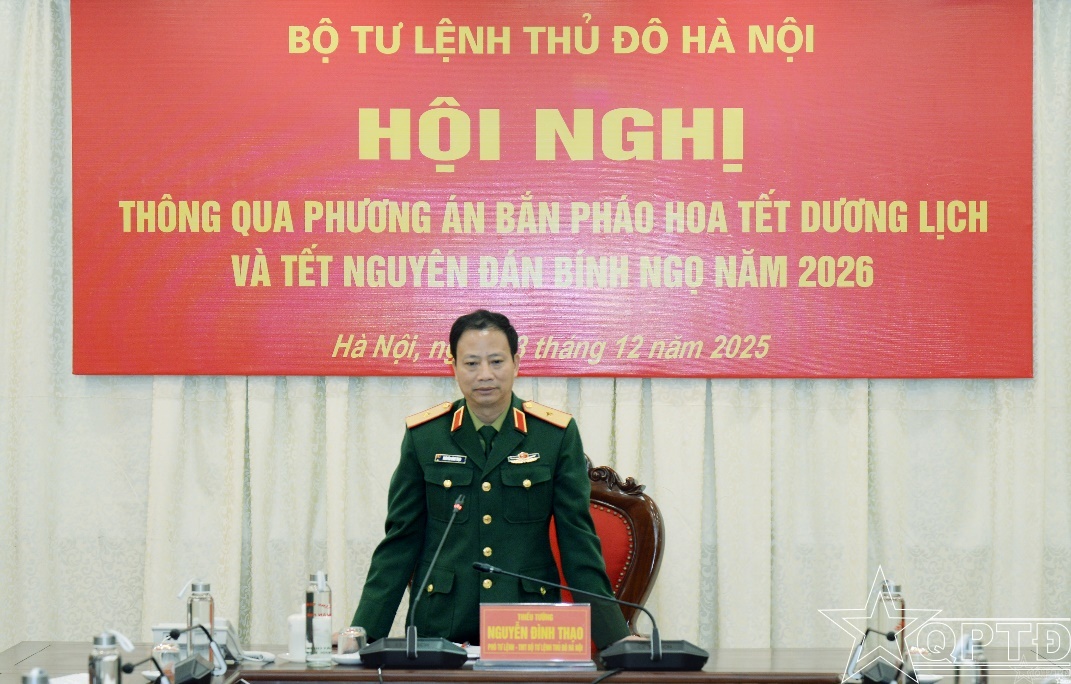 Phát biểu kết luận hội nghị, Thiếu tướng Nguyễn Đình Thạo nhấn mạnh: Việc tổ chức bắn pháo hoa dịp Tết Dương lịch và Tết Nguyên đán nhằm tạo không khí vui tươi, phấn khởi cho nhân dân, đồng thời góp phần quảng bá hình ảnh địa phương, thúc đẩy các hoạt động văn hóa-du lịch. Để bảo đảm cho đêm bắn pháo hoa diễn ra đúng kế hoạch, mang đến cho nhân dân màn pháo hoa mãn nhãn, an toàn, đồng chí Phó Tư lệnh kiêm Tham mưu trưởng Bộ Tư lệnh Thủ đô Hà Nội đề nghị các cơ quan chức năng phải đặt yếu tố an toàn, tiết kiệm, đúng quy định của pháp luật lên hàng đầu, không để xảy ra bất kỳ sai sót nào trong quá trình tổ chức. Các cơ quan liên quan khẩn trương hoàn thiện kế hoạch chi tiết, tổ chức rà soát về kỹ thuật, nhân lực và trang thiết bị; tăng cường công tác kiểm tra, giám sát trước, trong và sau thời điểm bắn pháo hoa, bảo đảm tuyệt đối an toàn cho nhân dân.