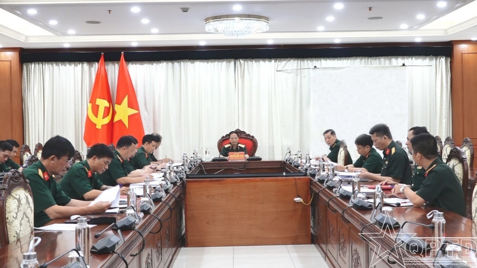 Thiếu tướng Nguyễn Đình Thạo, Phó Tư lệnh kiêm Tham mưu trưởng Bộ Tư lệnh Thủ đô Hà Nội chủ trì hội nghị.