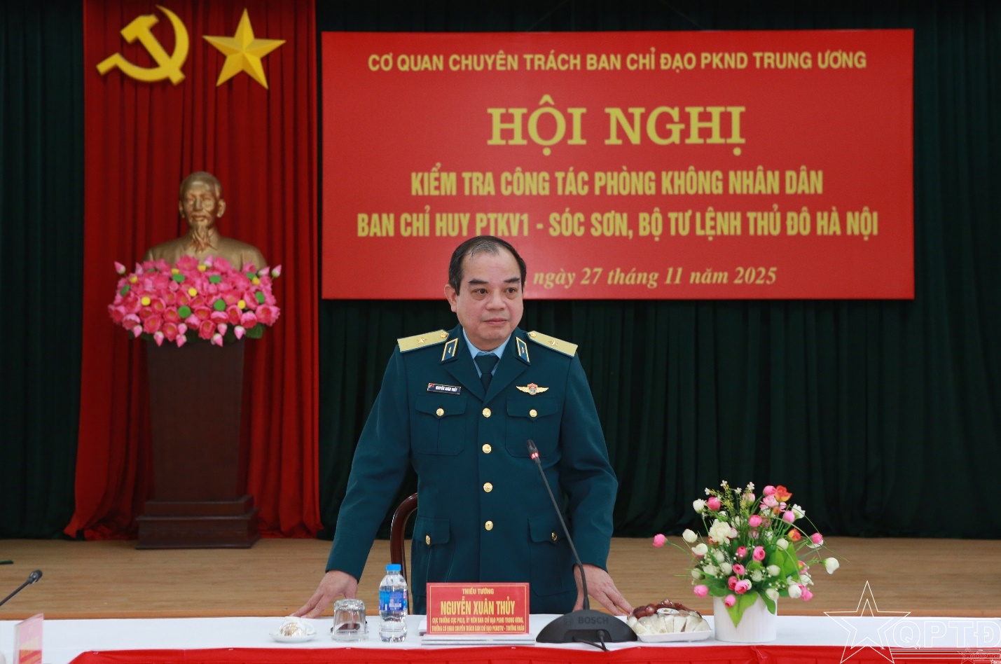 QPTĐ-Chiều 27-11, Cơ quan chuyên trách Ban Chỉ đạo Phòng không nhân dân Trung ương, do Thiếu tướng Nguyễn Xuân Thuỷ, Trưởng cơ quan Chuyên trách Ban Chỉ đạo Phòng không nhân dân Trung ương, Cục Trưởng cục Phòng không Lục quân, trưởng đoàn đã kiểm tra Ban CHPTKV 1 – Sóc Sơn về việc thực hiện công tác phòng không nhân dân (PKND).