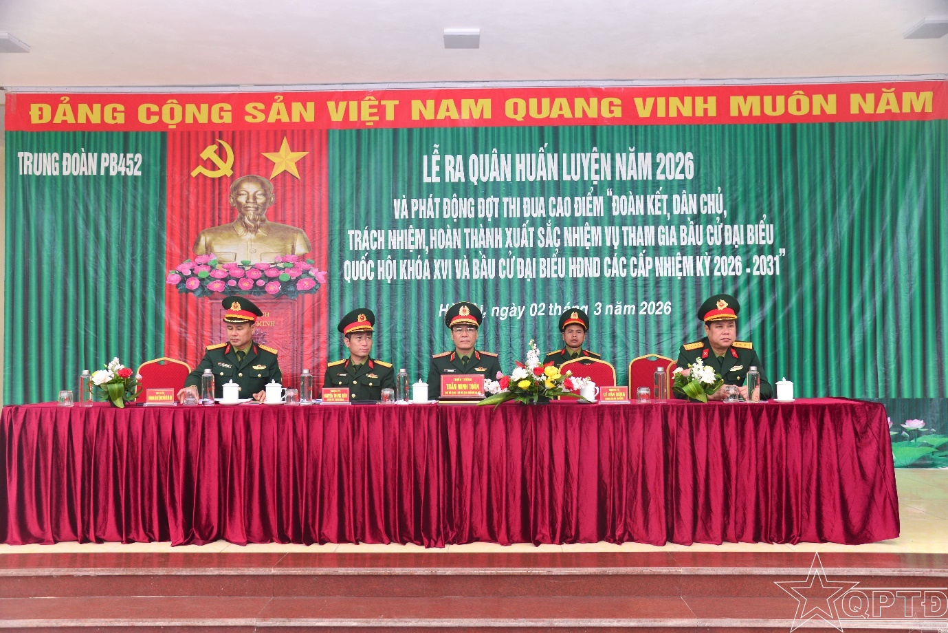 QPTĐ-Sáng 2-3, Trung đoàn Pháo binh 452 tổ chức Lễ ra quân huấn luyện năm 2026 và phát động Phong trào thi đua: “Huấn luyện giỏi, đoàn kết tốt, kỷ luật nghiêm, SSCĐ cao, an toàn tuyệt đối” và phát động đợt thi đua cao điểm: “Đoàn kết, dân chủ, trách nhiệm, hoàn thành xuất sắc nhiệm vụ tham gia bầu cử đại biểu Quốc hội khoá XVI và bầu cử đại biểu HĐND các cấp, nhiệm kỳ 2026-2031”.