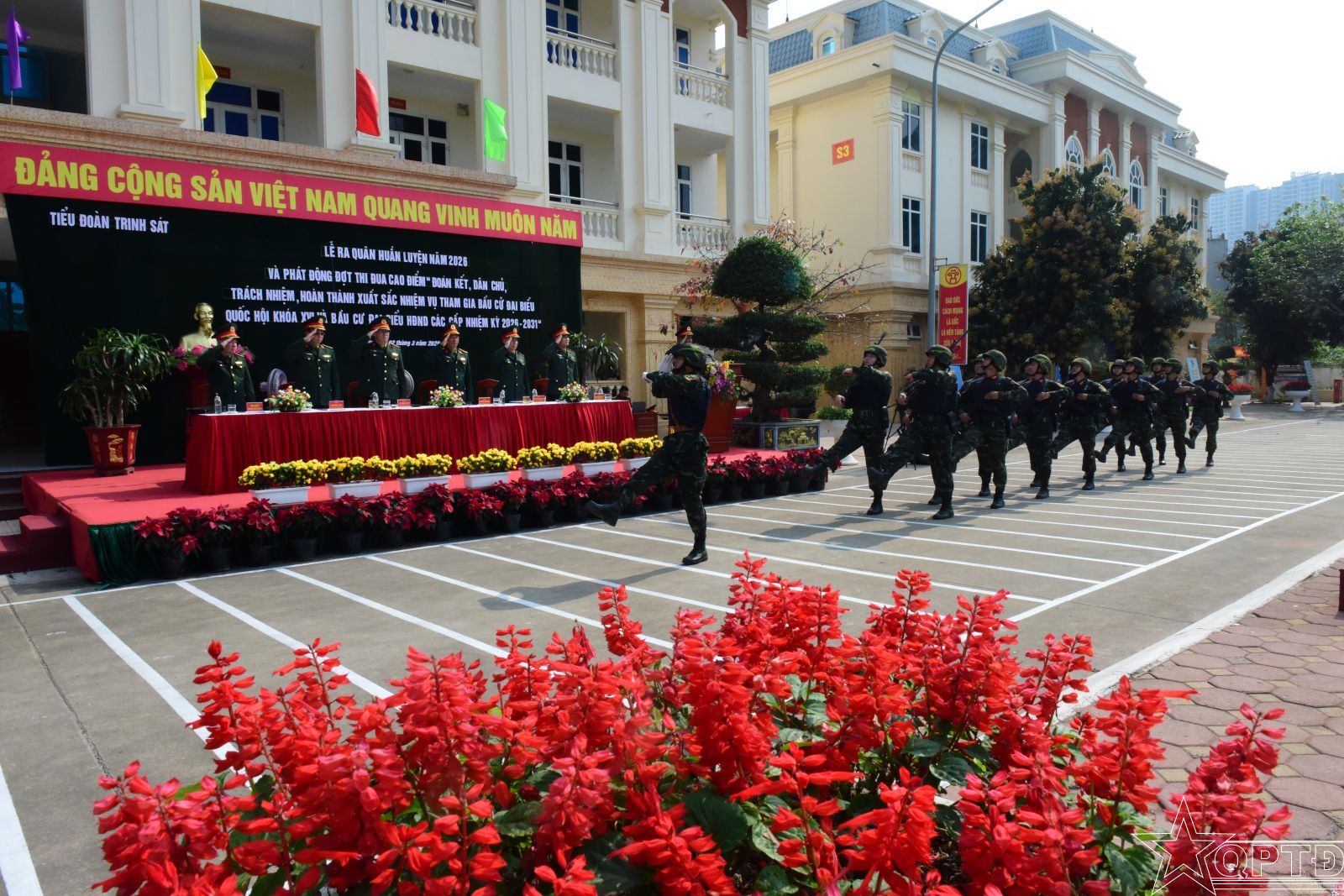 Duyệt đội ngũ trong Lễ ra quân huấn luyện.