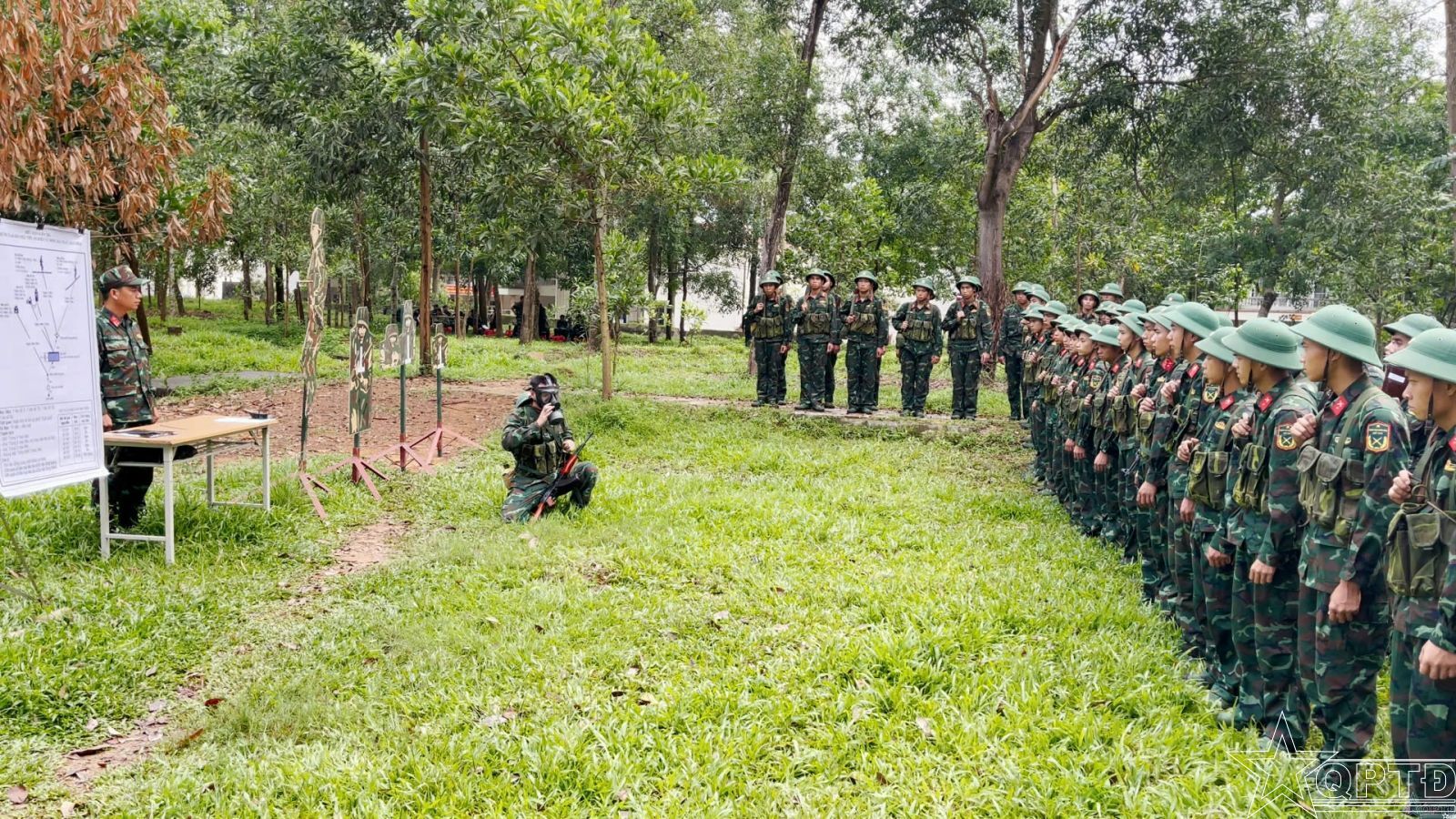 Diễn tập cuối khóa của học viên đào tạo cán bộ ngành quân sự cơ sở.