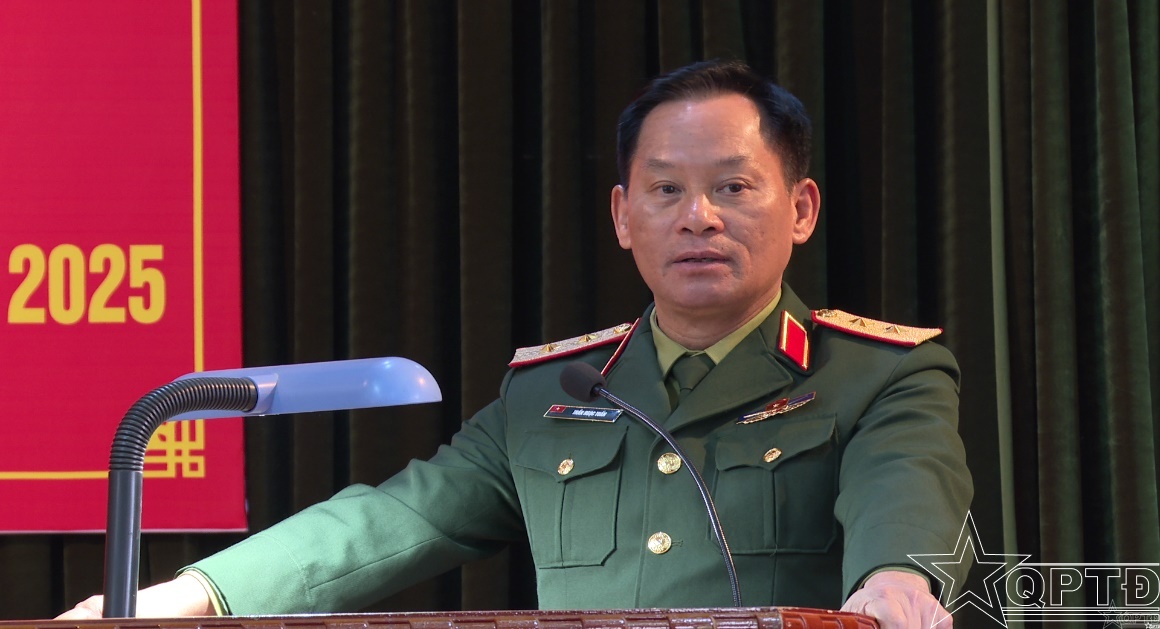 Trung tướng Trần Ngọc Tuấn, Phó Bí thư Thường trực Đảng ủy, Chính ủy Bộ Tư lệnh Thủ đô Hà Nội phát biểu tại buổi sinh hoạt.