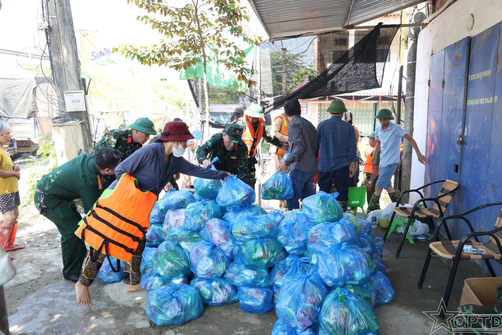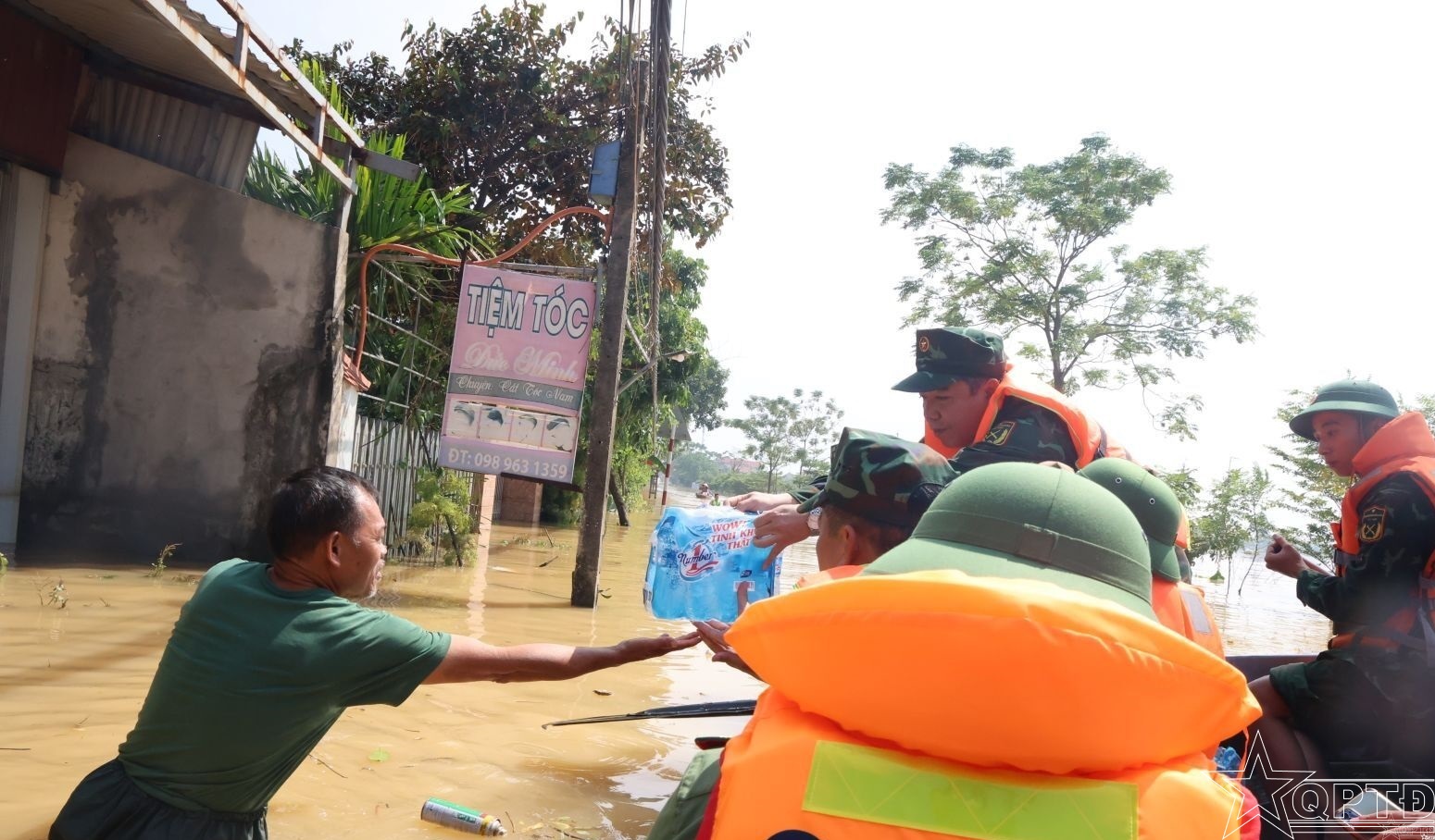 Lực lượng quân đội, công an, dân quân địa phương tiếp tục cứu trợ, bảo đảm nước uống, thức ăn và nhu yếu phẩm thiết yếu cho người dân còn trong khu ngập úng.