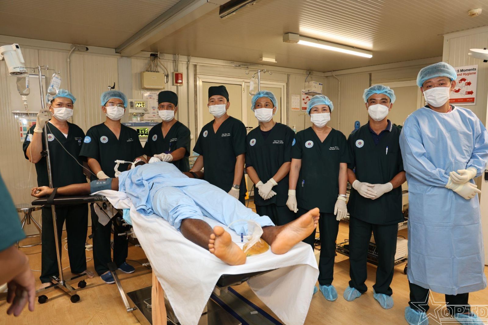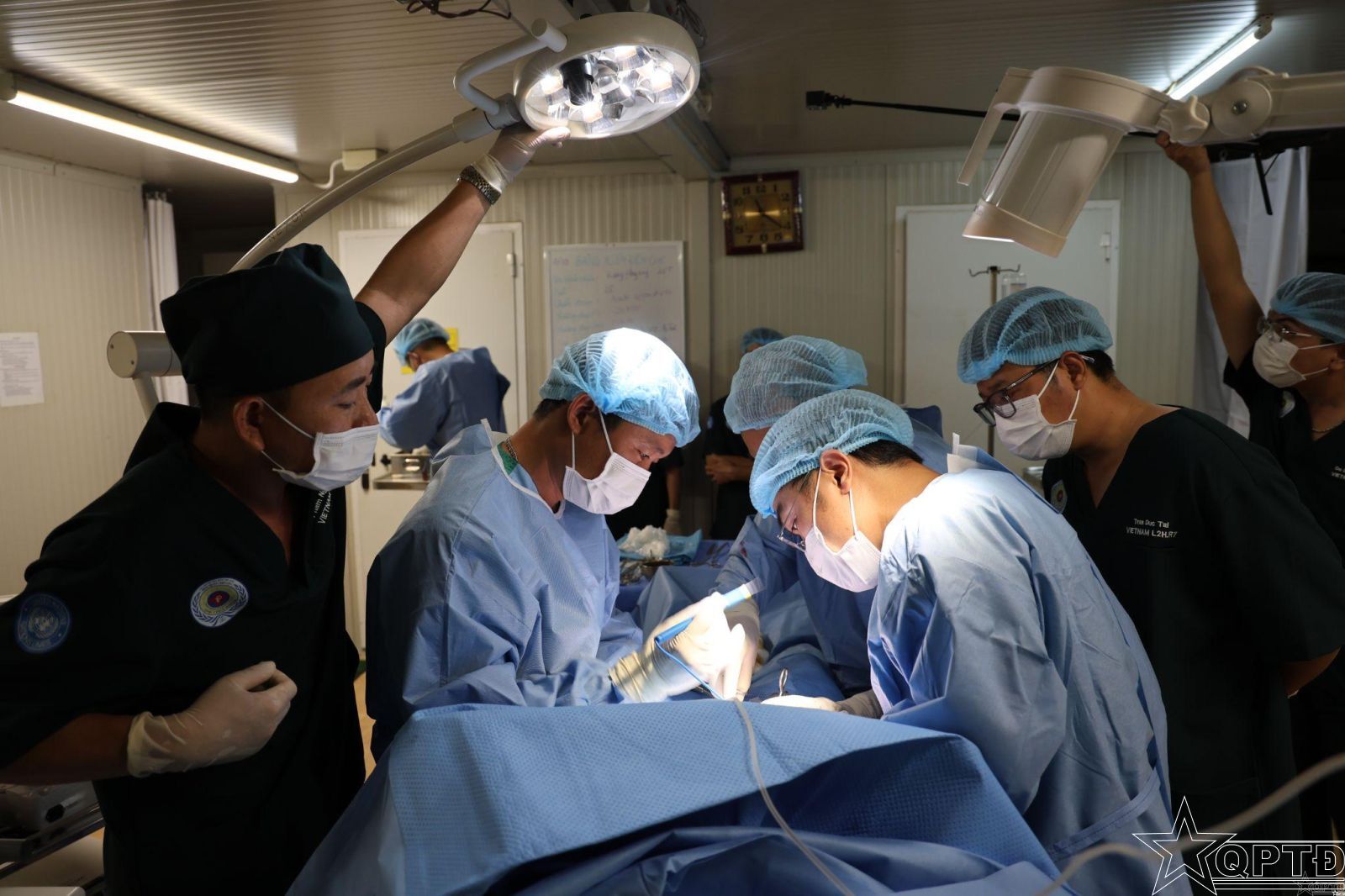 Ban Giám đốc bệnh viện đã khẩn trương kích hoạt quy trình chuyên môn theo tiêu chuẩn Liên hợp quốc, xin ý kiến chỉ đạo từ Chỉ huy y tế phái bộ UNMISS và quyết định tiến hành phẫu thuật ngay trong đêm. Sau gần 1 giờ làm việc khẩn trương và chính xác, ca mổ đã thành công. Bệnh nhân được chuyển về phòng hồi sức tích cực (ICU) lúc 00h10 giờ địa phương, trong tình trạng tỉnh táo, phản ứng tốt và đang tiếp tục hồi phục.