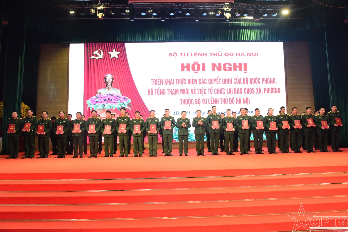 Tại hội nghị, các quyết định quan trọng đã được công bố: Miễn nhiệm chức danh Chỉ huy trưởng Ban CHQS cấp xã đối với các đồng chí là công chức theo Quyết định số 146 của Chủ tịch UBND thành phố Hà Nội và bổ nhiệm 126 sĩ quan thường trực đảm nhiệm chức danh Chỉ huy trưởng Ban CHQS xã, phường mới. Việc lựa chọn 126 đồng chí sĩ quan về nhận nhiệm vụ tại cơ sở đã được Ban Thường vụ Đảng ủy BTL Thủ đô xem xét kỹ lưỡng, thực hiện chặt chẽ, công khai và minh bạch. Đây là những cán bộ có phẩm chất chính trị vững vàng, được đào tạo bài bản qua các học viện, nhà trường quân đội và có kinh nghiệm thực tiễn phong phú tại các đơn vị chủ lực và cơ quan quân sự địa phương.