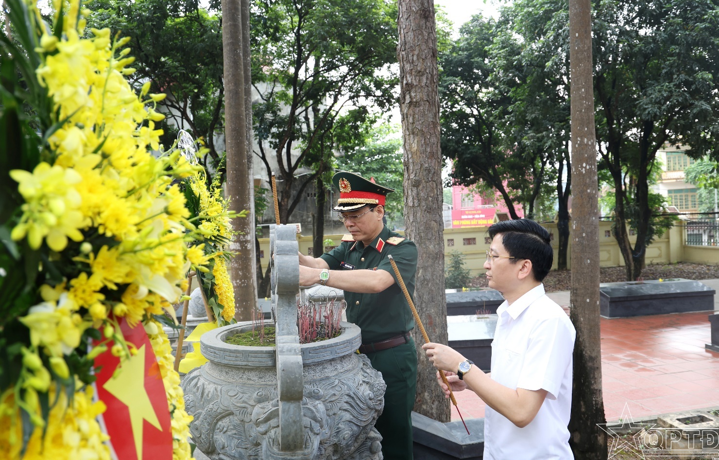 Thiếu tướng Trần Minh Toản, Phó Tư lệnh Bộ Tư lệnh Thủ đô Hà Nội cùng cấp uỷ, chính quyền địa phương dâng hương.