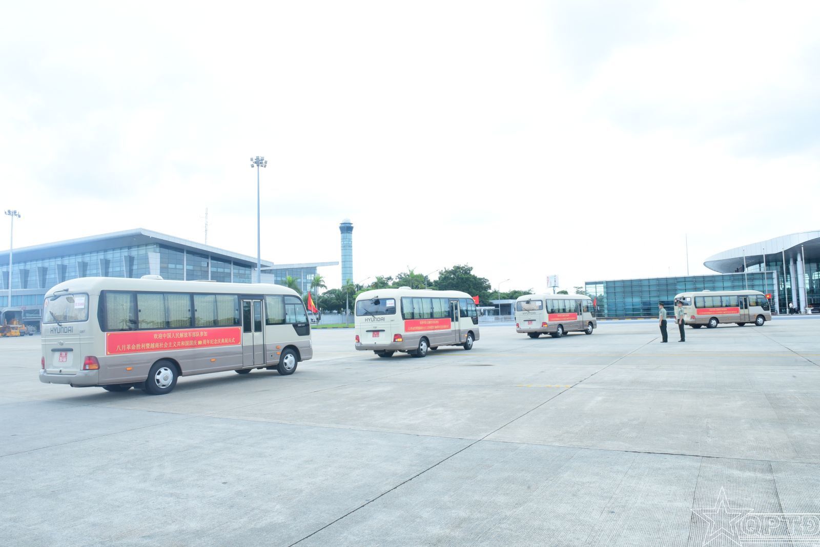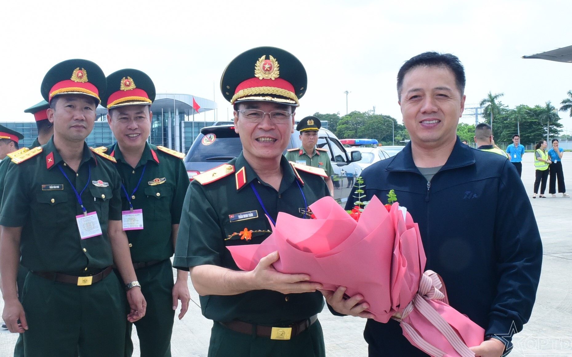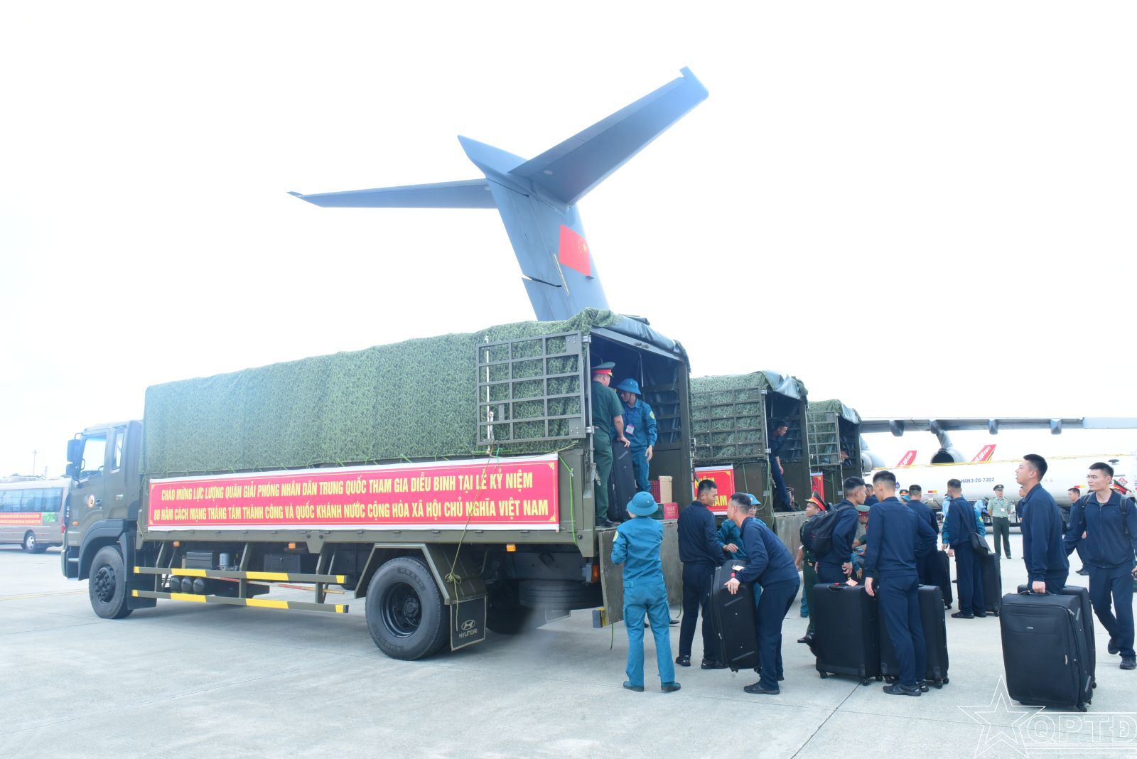 QPTĐ-Ngày 29/8, tại Cảng hàng không quốc tế Nội Bài, Thiếu tướng Trần Minh Toản, Phó Tư lệnh Bộ Tư lệnh Thủ đô Hà Nội và đại biểu các cơ quan chức năng Bộ Quốc phòng đã đón tiếp đoàn Quân giải phóng nhân dân Trung Quốc sang Việt Nam tham gia diễu binh, diễu hành tại Lễ kỷ niệm diễu binh, diễu hành kỷ niệm 80 năm Quốc khánh 2/9.