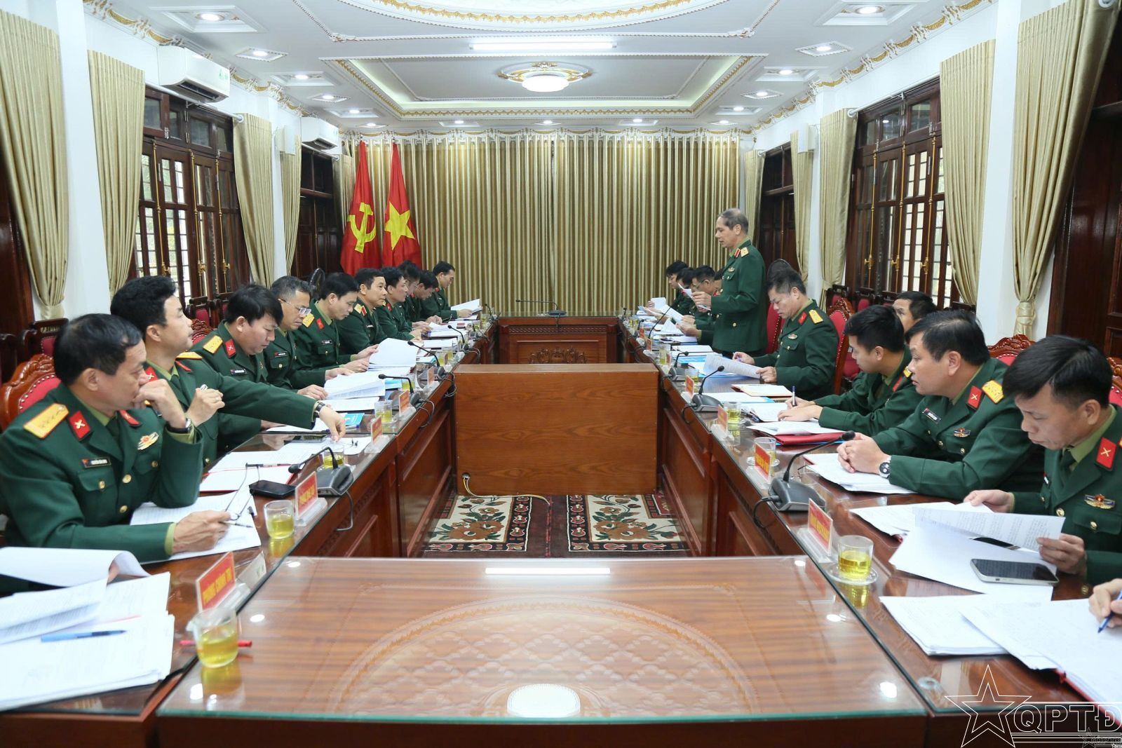 Đại tá Đỗ Hồng Thái, Hiệu trưởng Trường Quân sự Bộ Tư lệnh Thủ đô Hà Nội phát biểu tại buổi làm việc.