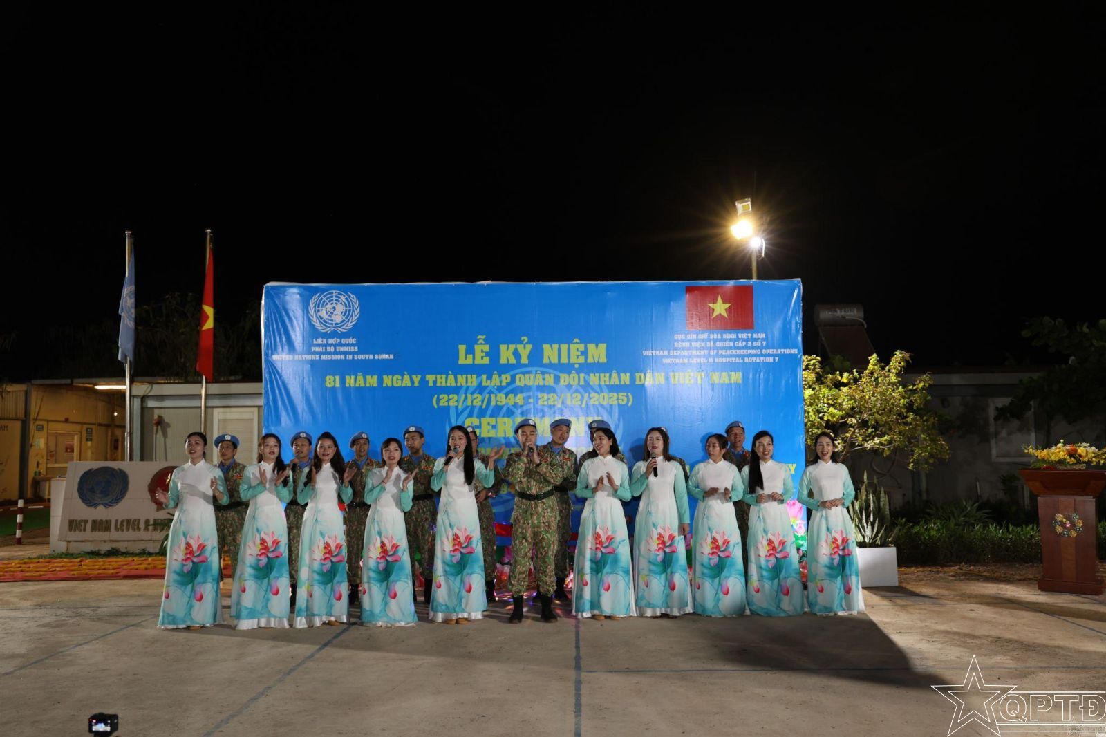 QPTĐ-Tại Phái bộ UNMISS, Nam Sudan, ngày 20/12, Bệnh viện Dã chiến cấp 2 số 7 (BVDC 2.7) đã long trọng tổ chức Lễ Kỷ niệm 81 năm Ngày thành lập Quân đội nhân dân Việt Nam (22/12/1944 – 22/12/2025). Buổi lễ có sự tham dự của hơn 100 đại biểu là lãnh đạo, chỉ huy Phân khu Unity, chỉ huy các đơn vị, sĩ quan và nhân viên gìn giữ hòa bình Liên hợp quốc (GGHB LHQ) đang công tác tại địa bàn.