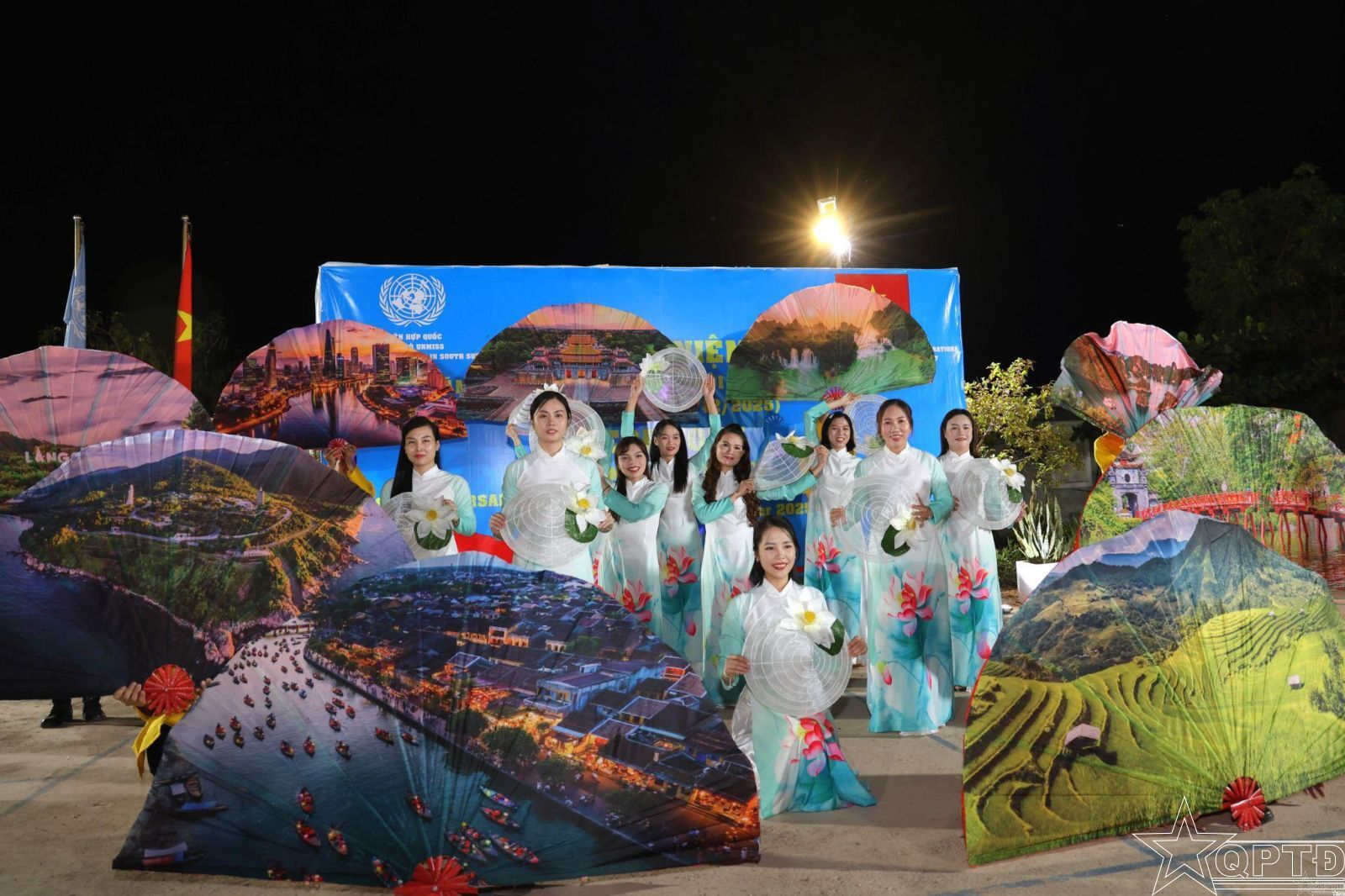 Cán bộ, nhân viên BVDC 2.7 giới thiệu văn hóa Việt Nam qua những bài hát và điệu múa đến với khách tham dự.
