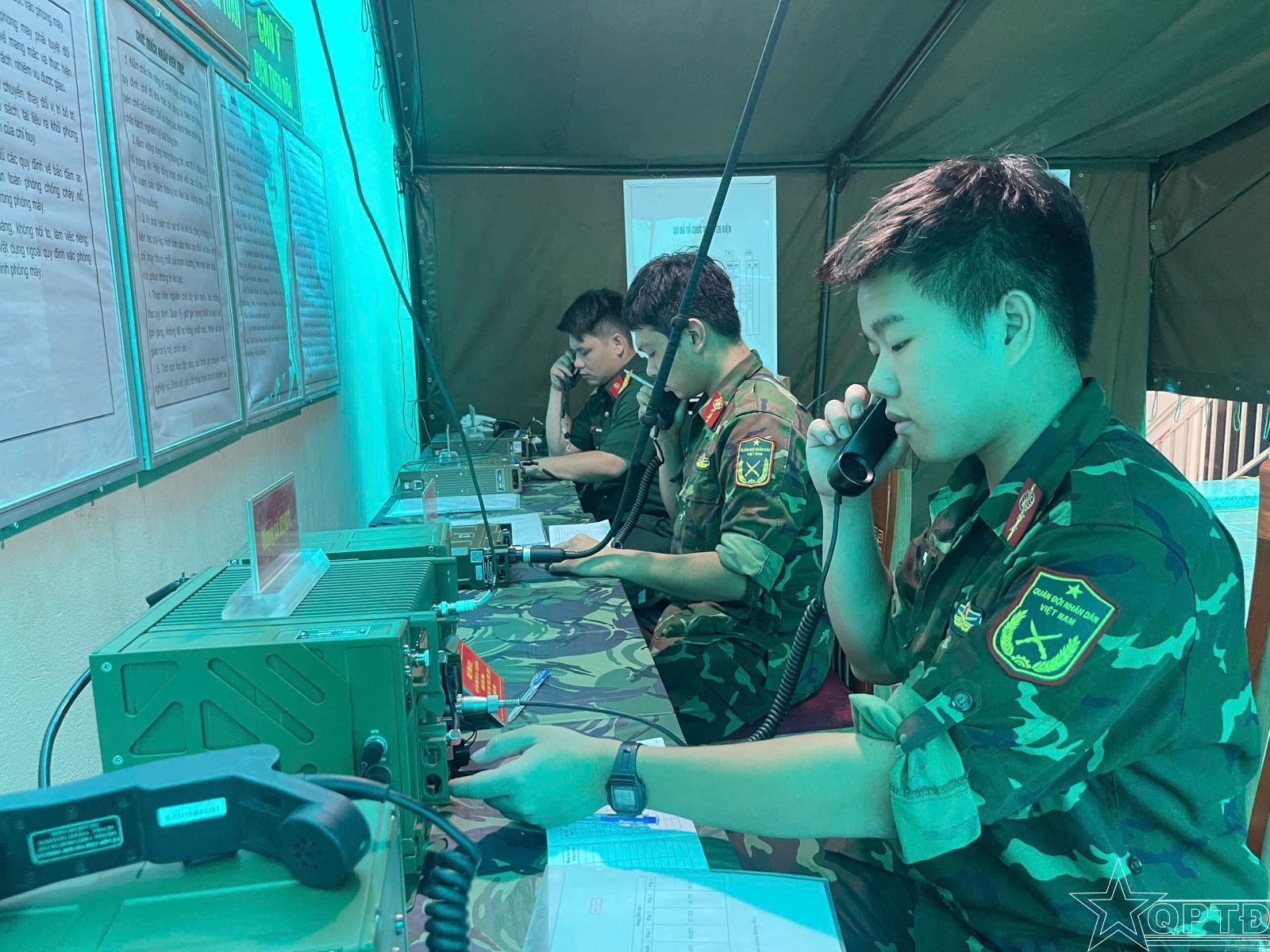 Trạm vô Tuyến điện- Tiểu đoàn Thông tin trong giờ trực thực hiện nhiệm vụ đảm bảo thông tin tại Sở Chỉ huy phía trước của Bộ Tư lệnh.
