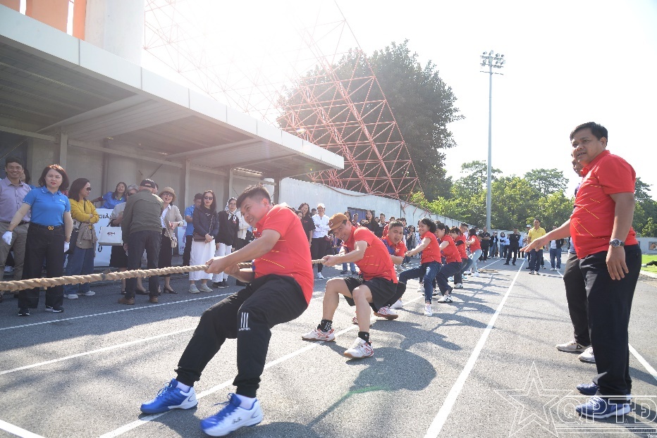 Vận động viên Báo Quốc phòng Thủ đô tranh tài môn kéo co.