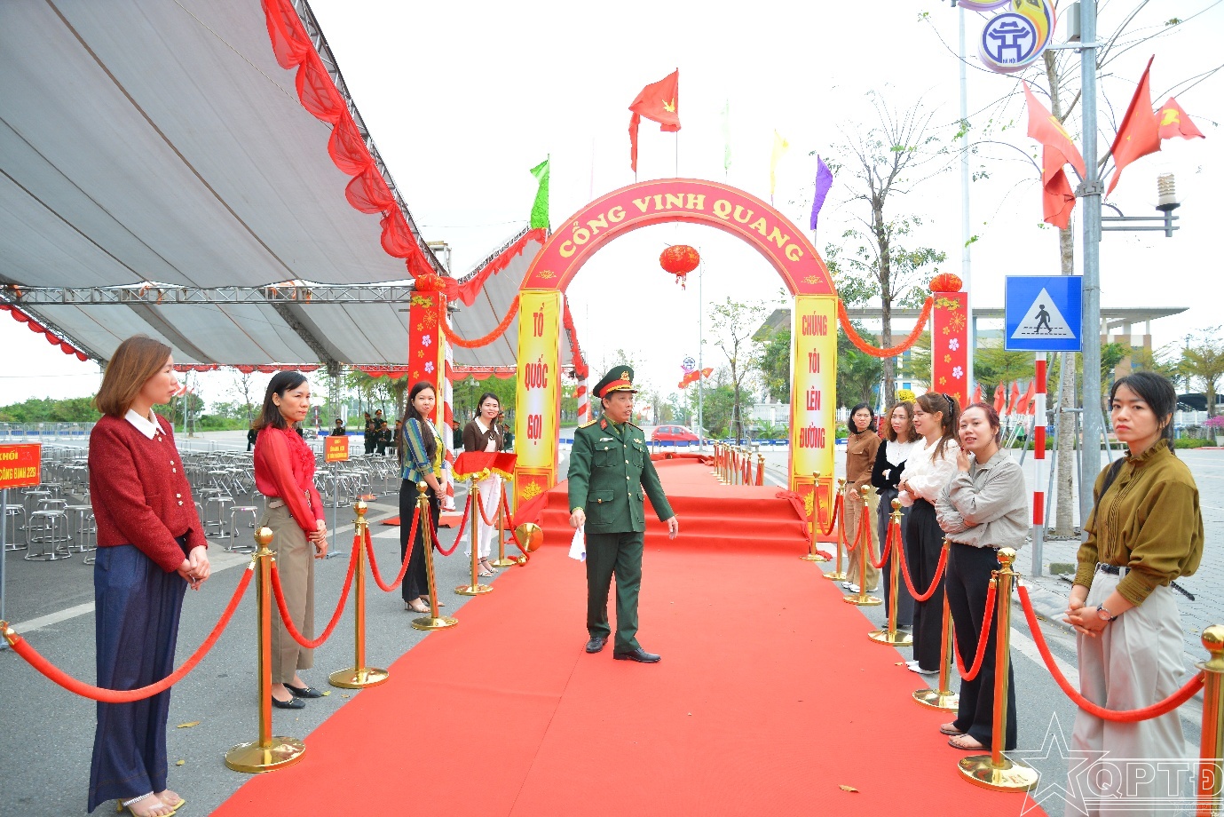Ban Chỉ huy phòng thủ khu vực 2 – Phúc Thọ tổ chức luyện tập nội dung tặng hoa tiễn thanh niên lên đường nhập ngũ tại Cổng vinh quang.