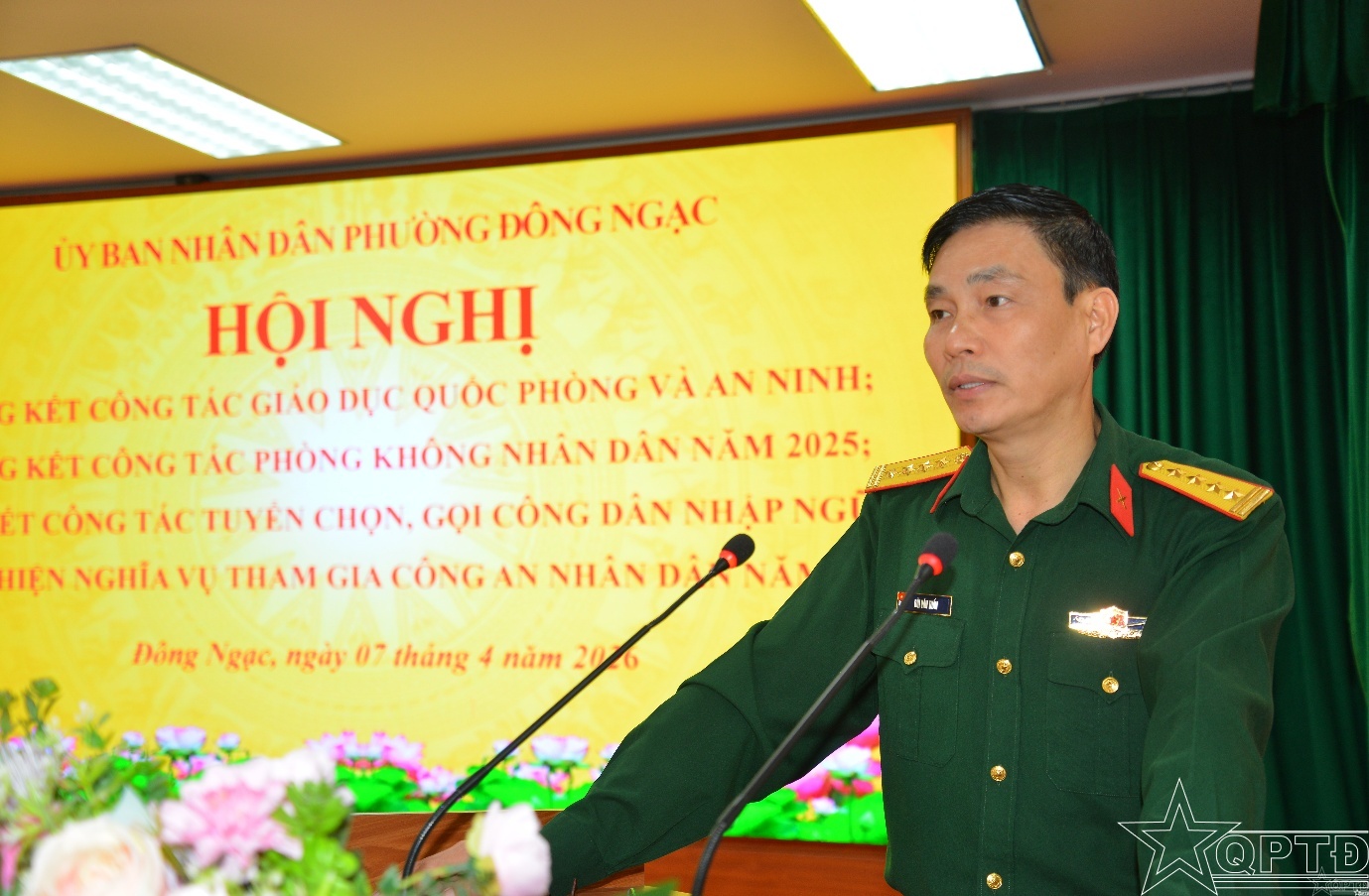 QPTĐ-Chiều 7/4, UBND phường Đông Ngạc, thành phố Hà Nội đã tổ chức hội nghị tổng kết công tác tuyển chọn, gọi công dân nhập ngũ và thực hiện nghĩa vụ tham gia Công an nhân dân năm 2026; tổng kết công tác giáo dục quốc phòng và an ninh, công tác Phòng không nhân dân năm 2025. Đại tá Bùi Văn Tuấn, Phó Tham mưu trưởng Bộ Tư lệnh Thủ đô Hà Nội dự hội nghị.