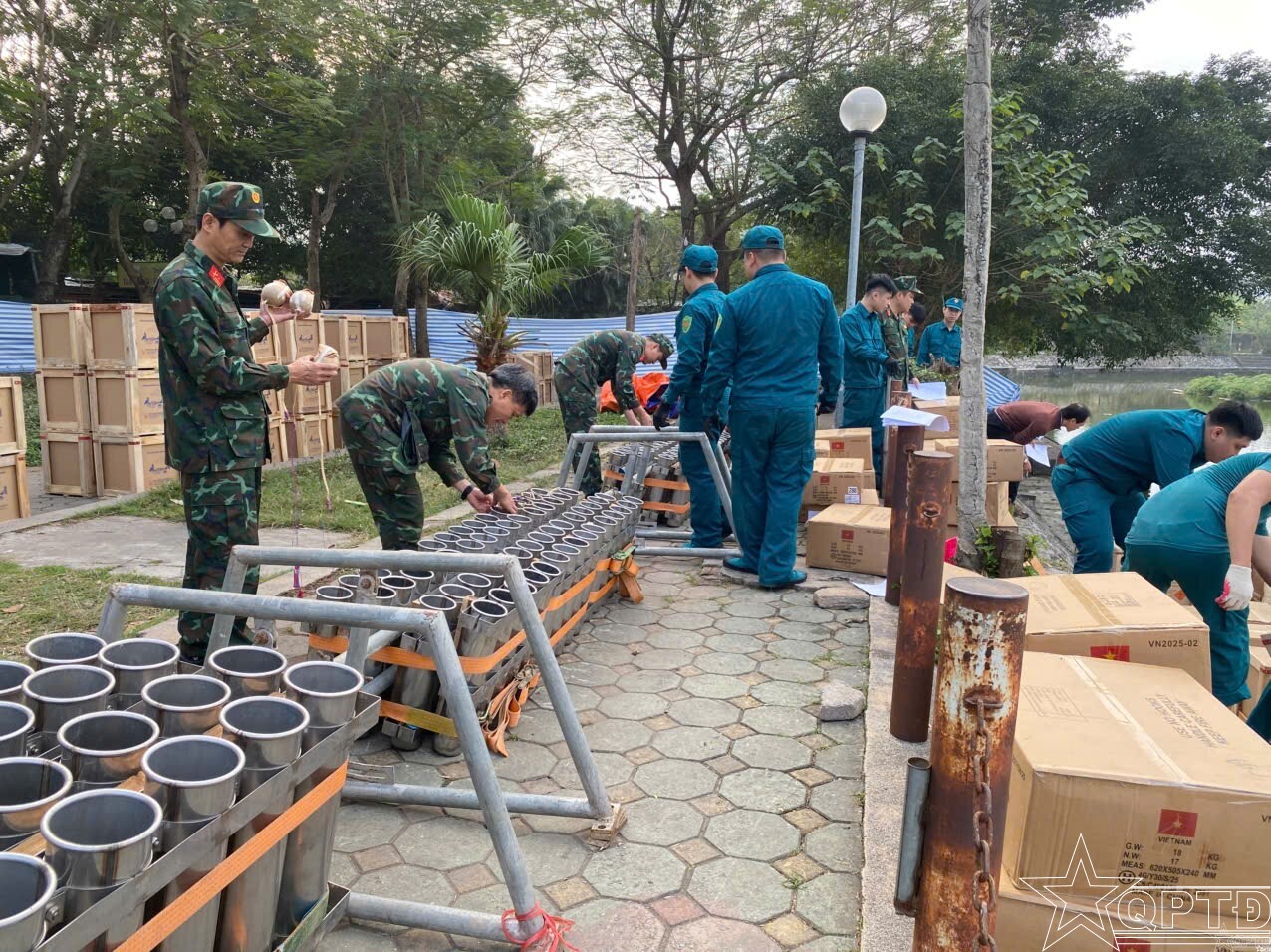 QPTĐ-Để chuẩn bị cho công tác bắn pháo hoa đêm Giao thừa Xuân Bính Ngọ, cán bộ, chiến sĩ Ban CHQS phường Hà Đông đang tích cực làm công tác chuẩn bị.
