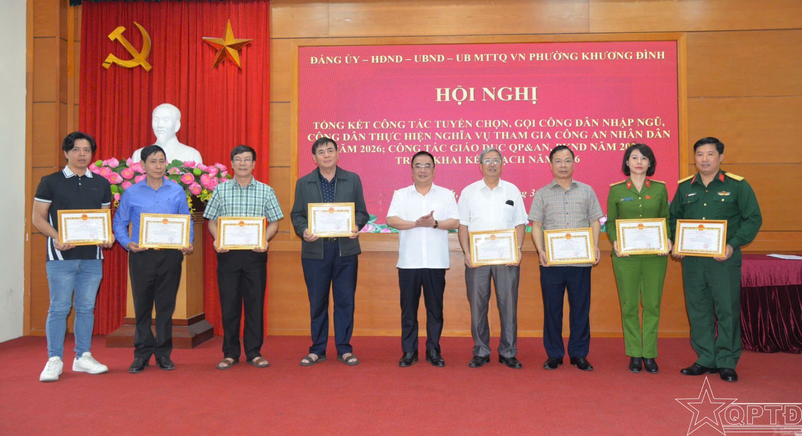 QPTĐ-Sáng 20-3, phường Khương Đình tổ chức tổng kết công tác tuyển chọn, gọi công dân nhập ngũ và thực hiện nghĩa vụ tham gia Công an nhân dân năm 2026; công tác giáo dục quốc phòng- an ninh, công tác phòng không nhân dân năm 2025 và triển khai nhiệm vụ năm 2026.