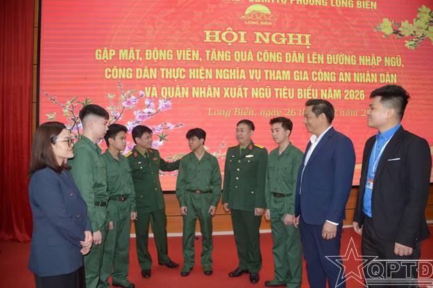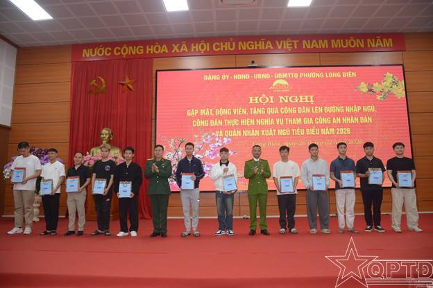 QPTĐ-Sáng 26-2, phường Long Biên đã tổ chức gặp mặt, động viên, tặng quà công dân lên đường nhập ngũ, công dân thực hiện nghĩa vụ tham gia Công an nhân dân và quân nhân xuất ngũ tiêu biểu năm 2026.