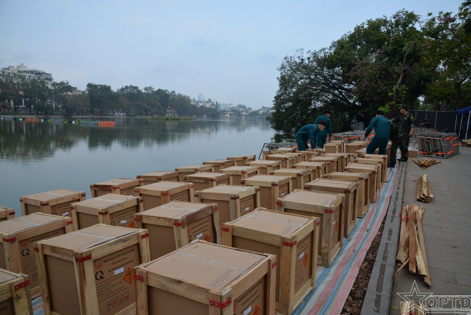 Trận địa pháo hoa của phường Phúc Lợi tại khu vực Vinhome Riverside.
