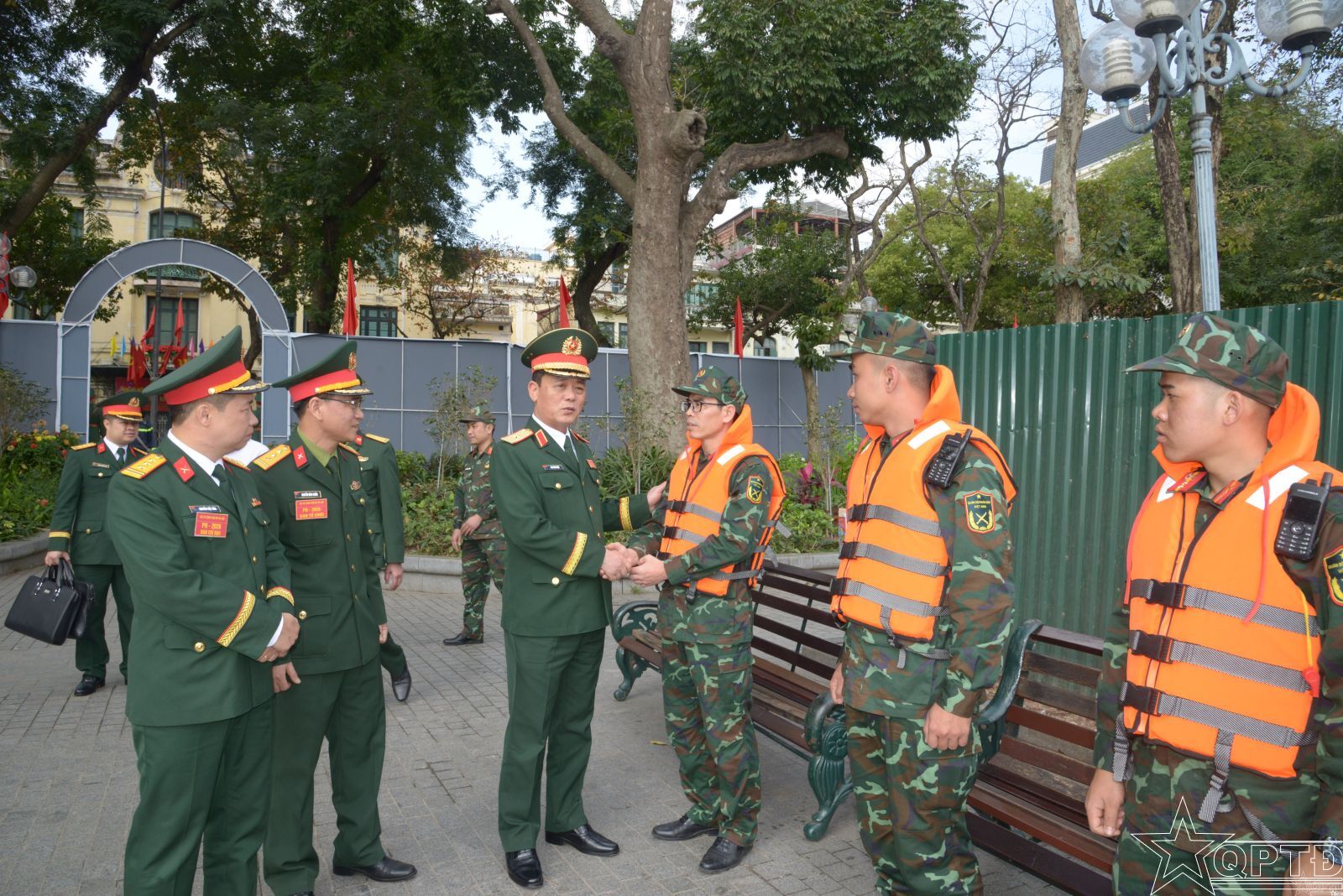 Thiếu tướng Đào Văn Nhận, Ủy viên Ban Thường vụ Thành ủy, Tư lệnh Bộ Tư lệnh thăm, động viên lực lượng tham gia thực hiện nhiệm vụ bắn pháo hoa của phường Hoàn Kiếm.