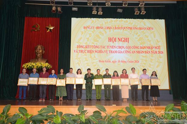 QPTĐ-Chiều 10-4, phường Hoàn Kiếm đã tổ chức Tổng kết công tác tuyển chọn, gọi công dân nhập ngũ và thực hiện nghĩa vụ tham gia Công an nhân dân năm 2026.
