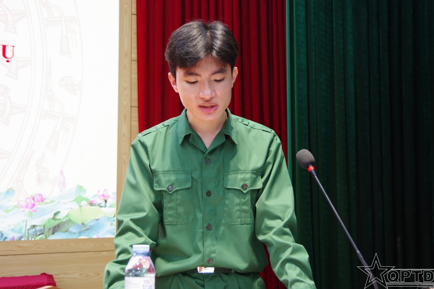 Đại diện công dân thực hiện nghĩa vụ quân sự và tham gia nghĩa vụ Công an nhân dân năm 2026 phát biểu.