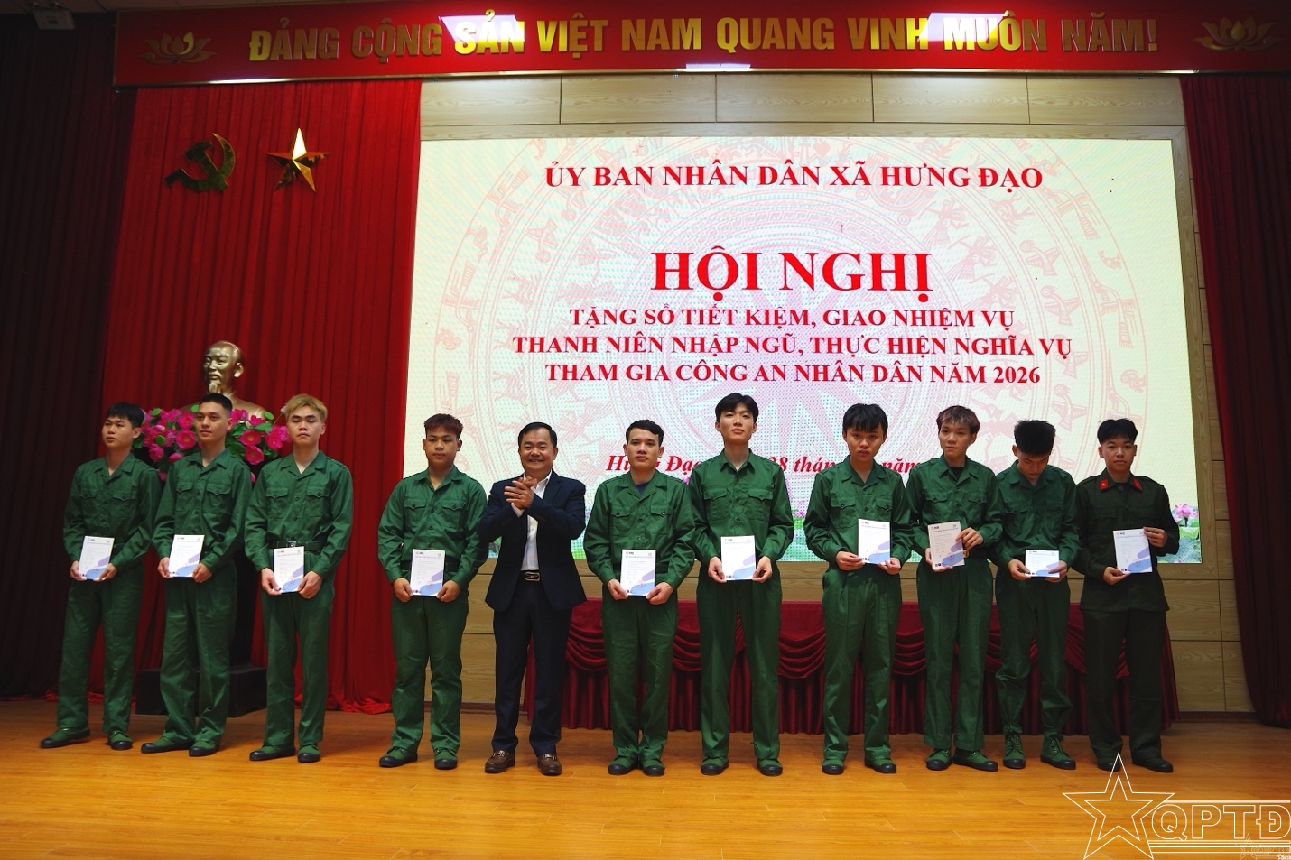 Đảng ủy, HĐND, UBND, Ủy ban MTTQ Việt Nam xã Hưng Đạo trao quà, sổ tiết kiệm tặng các công dân lên đường nhập ngũ và quân nhân xuất ngũ.