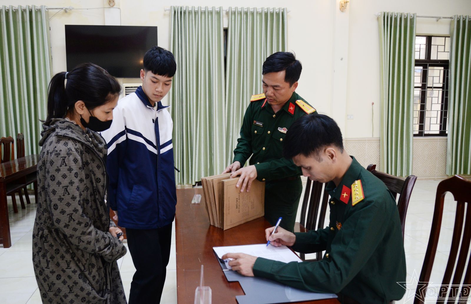Bộ đội xuất ngũ nhận hồ sơ, đăng ký.