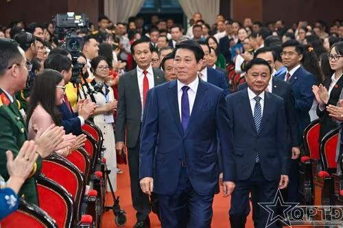 Chủ tịch nước Lương Cường, Thường trực Ban Bí thư Trần Cẩm Tú cùng các đại biểu dự Lễ trao giải.
