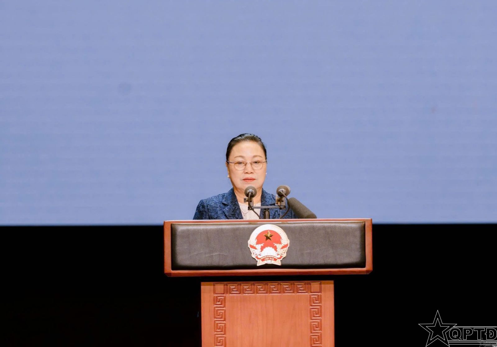 Bà Khamphau Ernthavanh, Đại sứ Đặc mệnh toàn quyền nước Cộng hòa dân chủ nhân dân Lào tại Việt Nam phát biểu tại buổi Lễ.