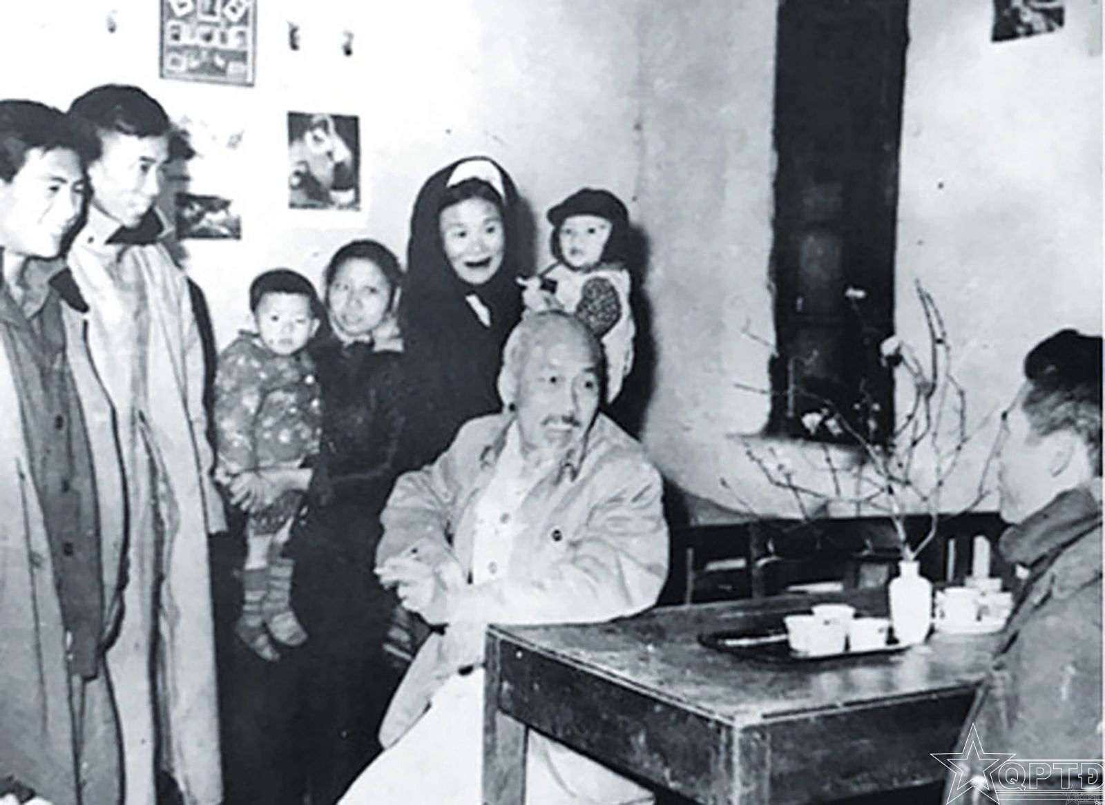 Chủ tịch Hồ Chí Minh thăm và chúc Tết gia đình ông Trần Công Tốt-công nhân Nhà máy Đèn Hà Nội-vào đêm Giao thừa Tết Canh Tý (27/1/1960).