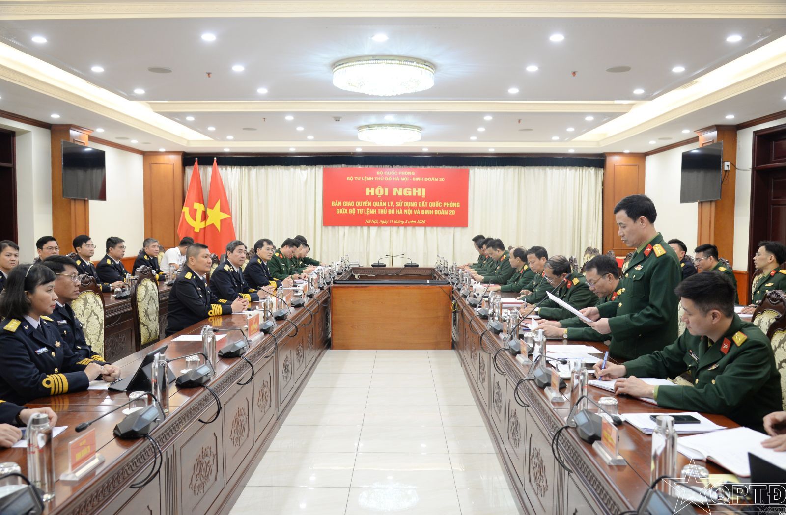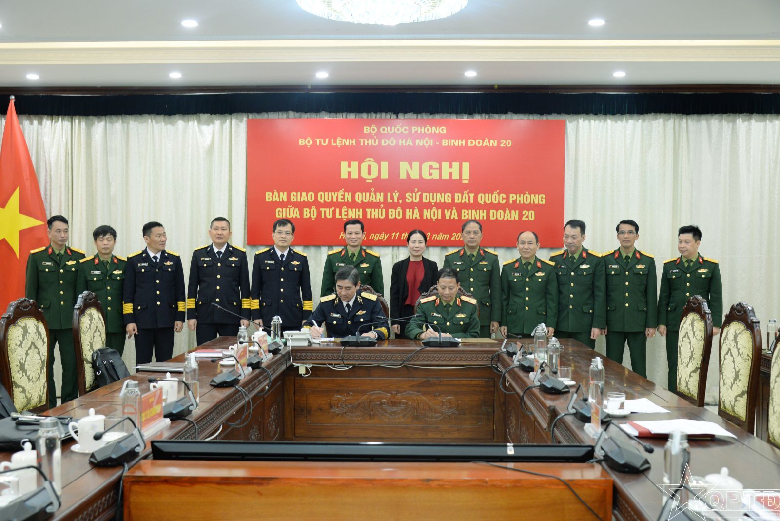 Tại hội nghị, các đại biểu đã nghe báo cáo kết quả công tác chuẩn bị; kiểm tra hồ sơ, xác định ranh giới và kiểm đếm giá trị tài sản. thủ trưởng Bộ Tư lệnh Thủ đô Hà Nội và Binh đoàn 20 đã thống nhất nội dung và tiến hành ký kết biên bản bàn giao. Cụ thể, Binh đoàn 20 tiếp nhận nguyên trạng khu đất quốc phòng 767,7m² và tài sản gắn liền với đất, để quản lý, sử dụng tài sản công và pháp luật liên quan. Thực hiện việc quản lý, tính hao mòn và chế độ báo cáo theo quy định; chủ trì, phối hợp với Bộ Tư lệnh Thủ đô Hà Nội trong quá trình làm việc với các cơ quan chức năng của địa phương để hoàn thành các thủ tục pháp lý về đất đai theo quy định của pháp luật.