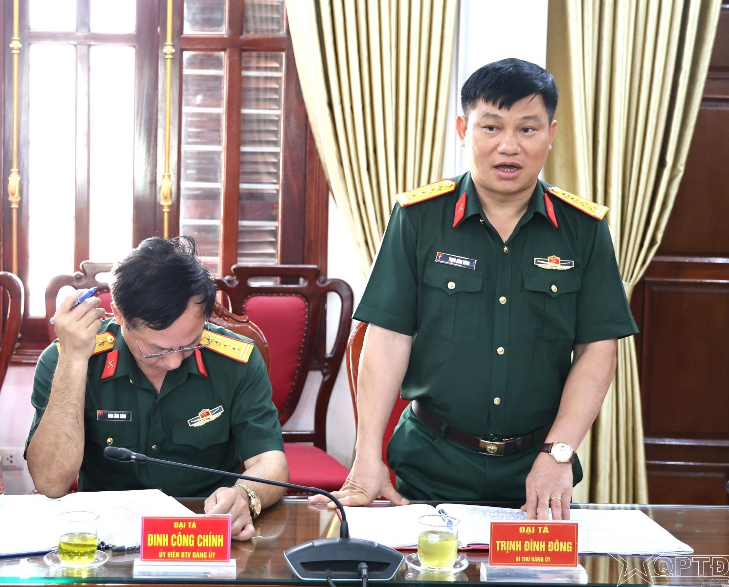 Đại tá Trịnh Đình Đông, Bí thư Đảng ủy, Chính ủy Nhà trường báo cáo công tác chuẩn bị với Đoàn kiểm tra.