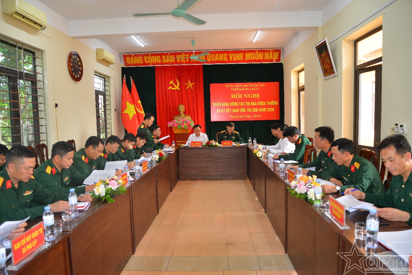 QPTĐ-Chiều 17-3, Khối Thi đua số 13, Bộ Tư lệnh Thủ đô Hà Nội gồm Ban CHQS các phường: Chương Mỹ, Dương Nội, Yên Nghĩa và Ban CHQS các xã: An Khánh, Xuân Mai, Phú Nghĩa, Hưng Đạo, Kiều Phú và Phú Cát đã tổ chức Hội nghị triển khai công tác thi đua, khen thưởng và ký kết giao ước thi đua năm 2026.
