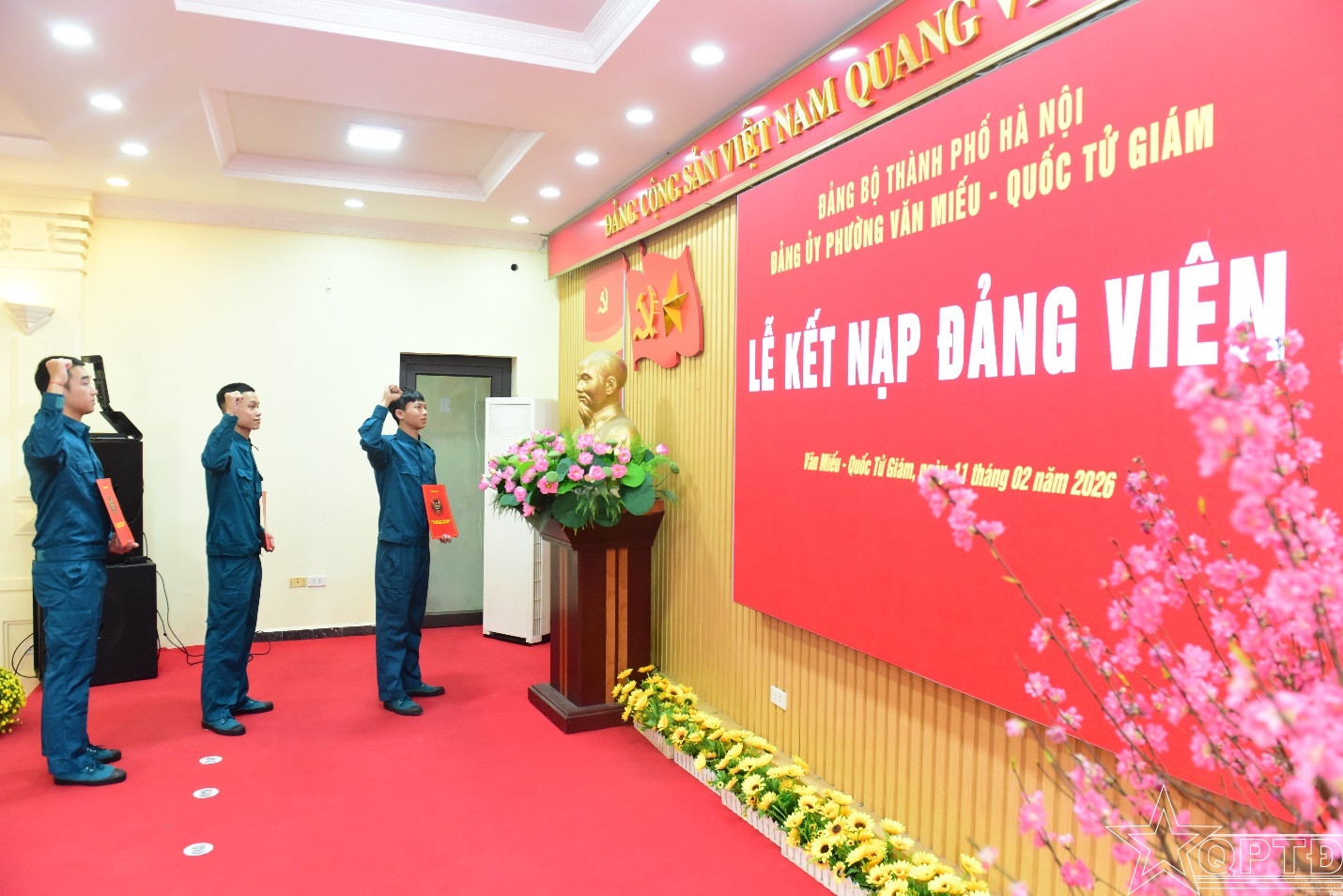 QPTĐ-Chiều 11/2, Đảng ủy phường Văn Miếu-Quốc Tử Giám đã tổ chức Lễ kết nạp đảng viên cho 3 quần chúng ưu tú là các công dân chuẩn bị lên đường nhập ngũ năm 2026. Đây là dấu mốc quan trọng, tiếp thêm động lực cho các bạn trẻ trước khi bước vào môi trường quân ngũ.