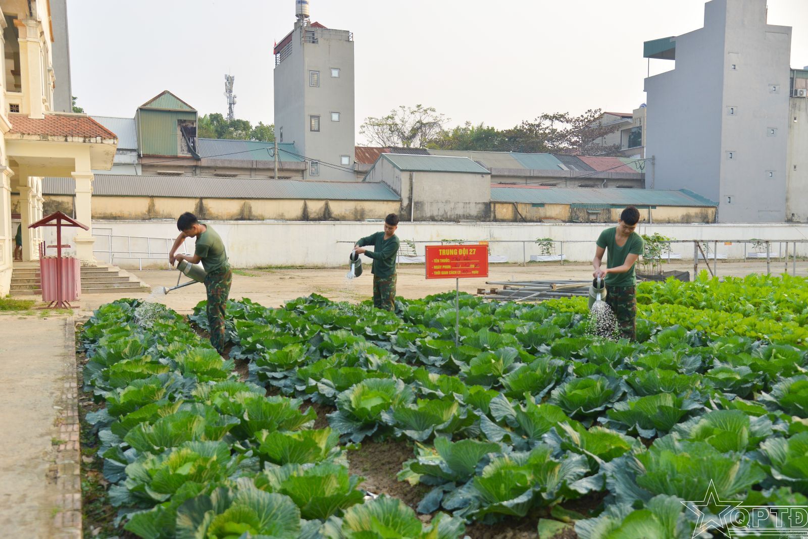 Cảm nhận đầu tiên khi chúng tôi đến Trung đoàn 692, Sư đoàn Bộ binh 301 là sắc xanh trải dài trong khu tăng gia sản xuất của đơn vị. Trên vùng đất đồi vốn khô cằn, sỏi đá, những luống rau vẫn lên đều, xanh mướt. Những giàn bí trĩu quả. Chuồng trại chăn nuôi được quy hoạch gọn gàng, khoa học với những đầu lợn, đầu gia cầm đã đạt chuẩn để khai thác. Tất cả cho thấy sự chủ động, bài bản trong công tác hậu cần cho ngày Tết được chuẩn bị từ rất sớm. Trung tá Tạ Duy Định, Chủ nhiệm Hậu cần-Kỹ thuật Trung đoàn 692 chia sẻ với chúng tôi: “Để bảo đảm Tết cho bộ đội đủ đầy, an toàn, đơn vị đã chủ động xây dựng kế hoạch tăng gia chăn nuôi, trồng rau ngay từ giữa năm, tăng cường diện tích rau xanh từ đầu tháng 12. Nhờ đó, đến thời điểm này, Trung đoàn đã chuẩn bị đủ đầu lợn, gia cầm và nhiều diện tích rau xanh các loại, sẵn sàng phục vụ cán bộ, chiến sĩ đón Tết tại đơn vị...”.