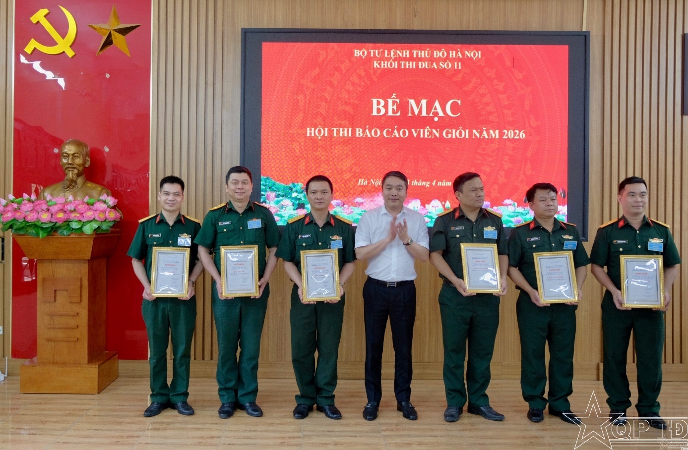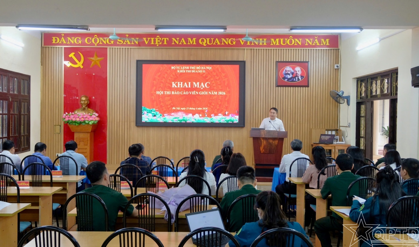 QPTĐ-Sáng 23/4, Khối thi đua số 11, Bộ Tư lệnh Thủ đô Hà Nội gồm Ban CHQS các xã: Sóc Sơn, Nội Bài, Kim Anh, Đa Phúc, Trung Giã, Thư Lâm đã tổ chức Hội thi Báo cáo viên giỏi năm 2026.